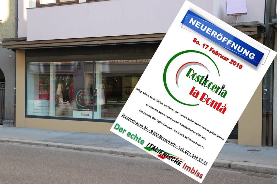 Jetzt ist das Cafe Niederer wirklich GeschichteThemen:BeizenRorschach 17. Februar 2019 - 06:10Heute ist Eröffnung an der Hauptstrasse 36. Man muss es einfach versuchen. Öffnungszeiten sind keine auf dem Flyer ersichtlich.Teilen mit: Einen Link per E-Mail an einen Freund senden (Wird in neuem Fenster geöffnet) E-Mail Drucken (Wird in neuem Fenster geöffnet) Drucken Auf Facebook teilen (Wird in neuem Fenster geöffnet) Facebook Auf X teilen (Wird in neuem Fenster geöffnet) X Auf WhatsApp teilen (Wird in neuem Fenster geöffnet) WhatsApp Gefällt mir:Gefällt mir Wird geladen …Newsletter abonnieren Bitte dieses Feld leer lassenBitte wähle, ob Du über jeden neuen Beitrag sofort oder lieber jeden Morgen gegen 9 Uhr eine Zusammenfassung der neusten Beiträge erhalten möchtest.Liste(n) auswählen: Neues vom Echo (Zusammenfassung) Neues vom Echo (Sofortbenachrichtigung) Dieses Feld wird benötigt.Prüfen Sie Ihren Posteingang und den Spamordner, um Ihr Abonnement zu bestätigen.