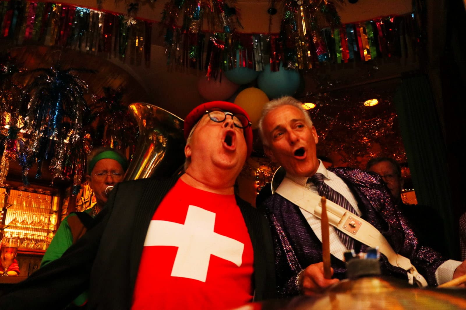 No öppis zu denä Inschtrument do: Diä hend ä paar so ARMi vo dä ARMa Suisse für üs z’Amerika iikauft. Sind äbä au so ARMlüüchter, diä vo dä ARMa Suisse, dass diä Chübel usgrächnät döt hinä muänd iichaufä! Drum haissäd diä au nöd Trommlä, sondern Trömplä – und da wo diä zwei do zelebralieräd wird trömpälä gnennt!