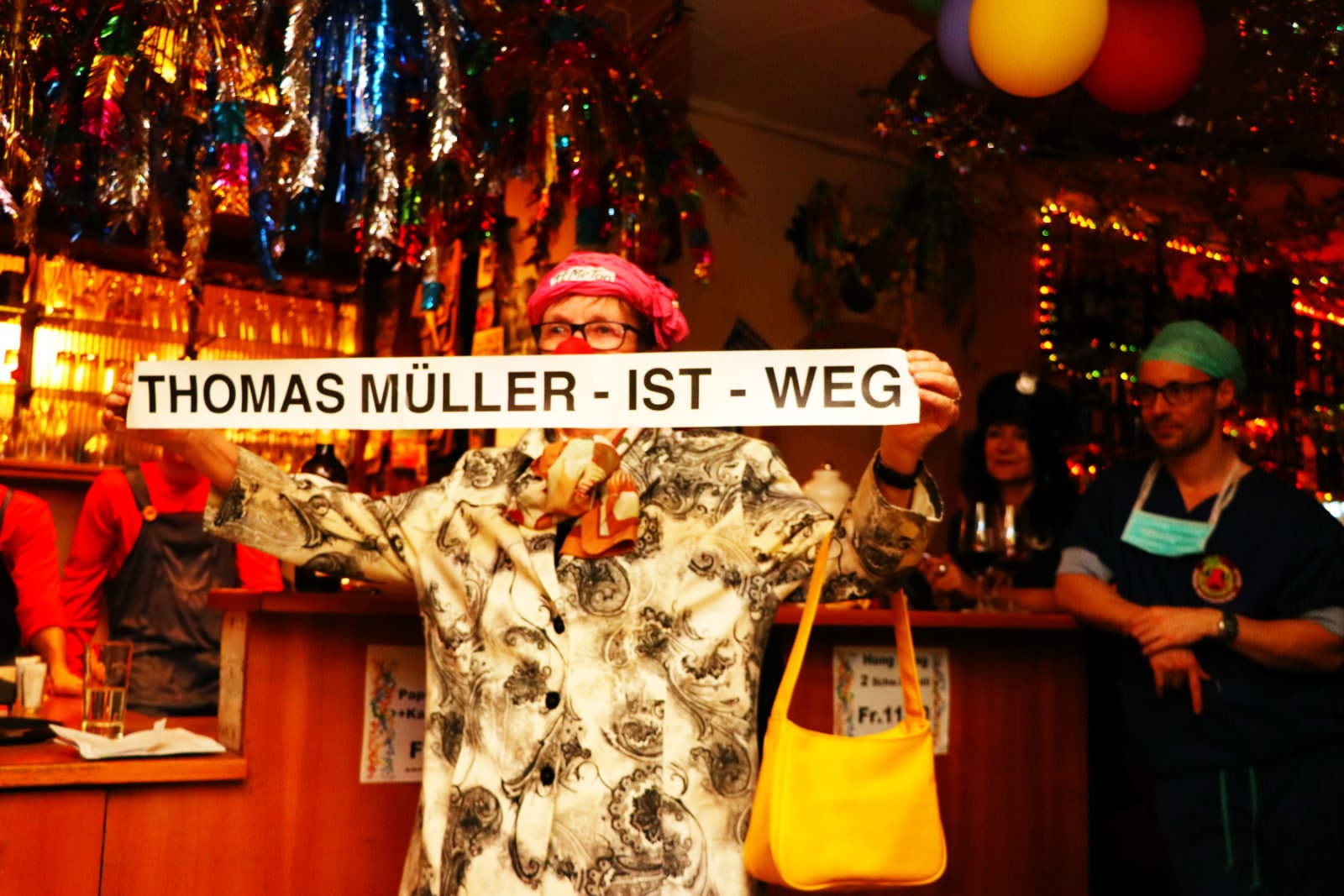 Früehner, won ich no Nationalrat gsi bi z’Rorschach, isch no alläs guät gsi. Etz hört sogar dä Thomas Müller uf und im Fusschwanz häts nur no ä truurigi dunkli Dekoration mit schwarzä Tischtüecher. Än huerä Saich isch das – wenn i det nöd no chönnt da slowakischa Serviertochter uf dä Arsch luägä, denn hät i uf dä Arsch luägä, denn hät i Serviertochter uf dä Arsch luägä, denn hät i