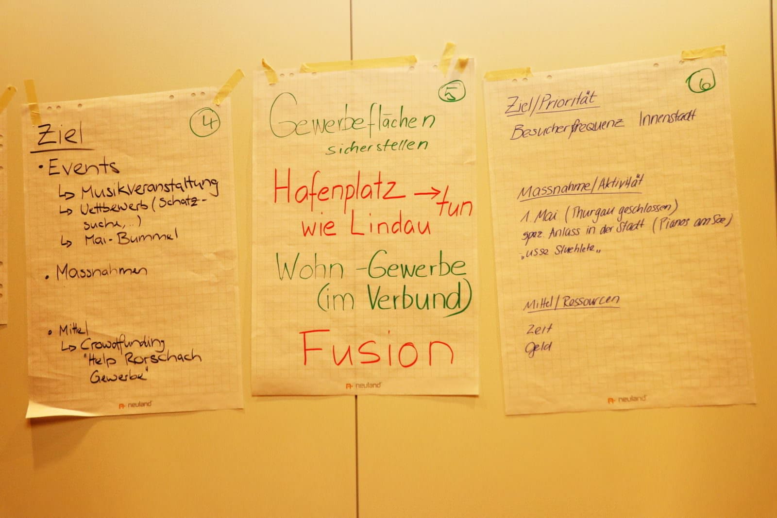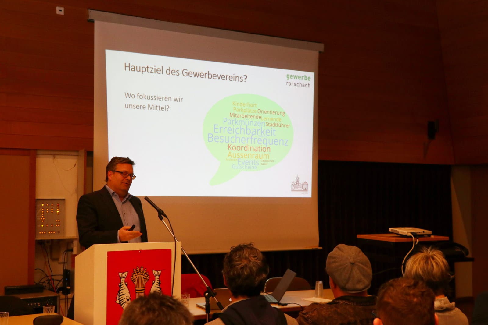 Im Anschluss an die Traktanden hatten die Teilnehmenden die Möglichkeit, bei der Neuausrichtung der Strategie des Gewerbevereins aktiv mitzuwirken. Im Workshop-Verfahren konnte man Anliegen einbringen und so die zukünftige Ausrichtung des Gewerbevereins mitbestimmen. Ein interessanter interaktiver Versuch, der dem Vorstand einige Inputs vermittelt hat. Bleibt zu hoffen, dass diese Ideen mehr Erfolg haben wie jene mit dem Schaukasten an der Signalstrasse. Dieser wird vom Gewerbeverein Rorschach per Ende 2019 wieder abgegeben.