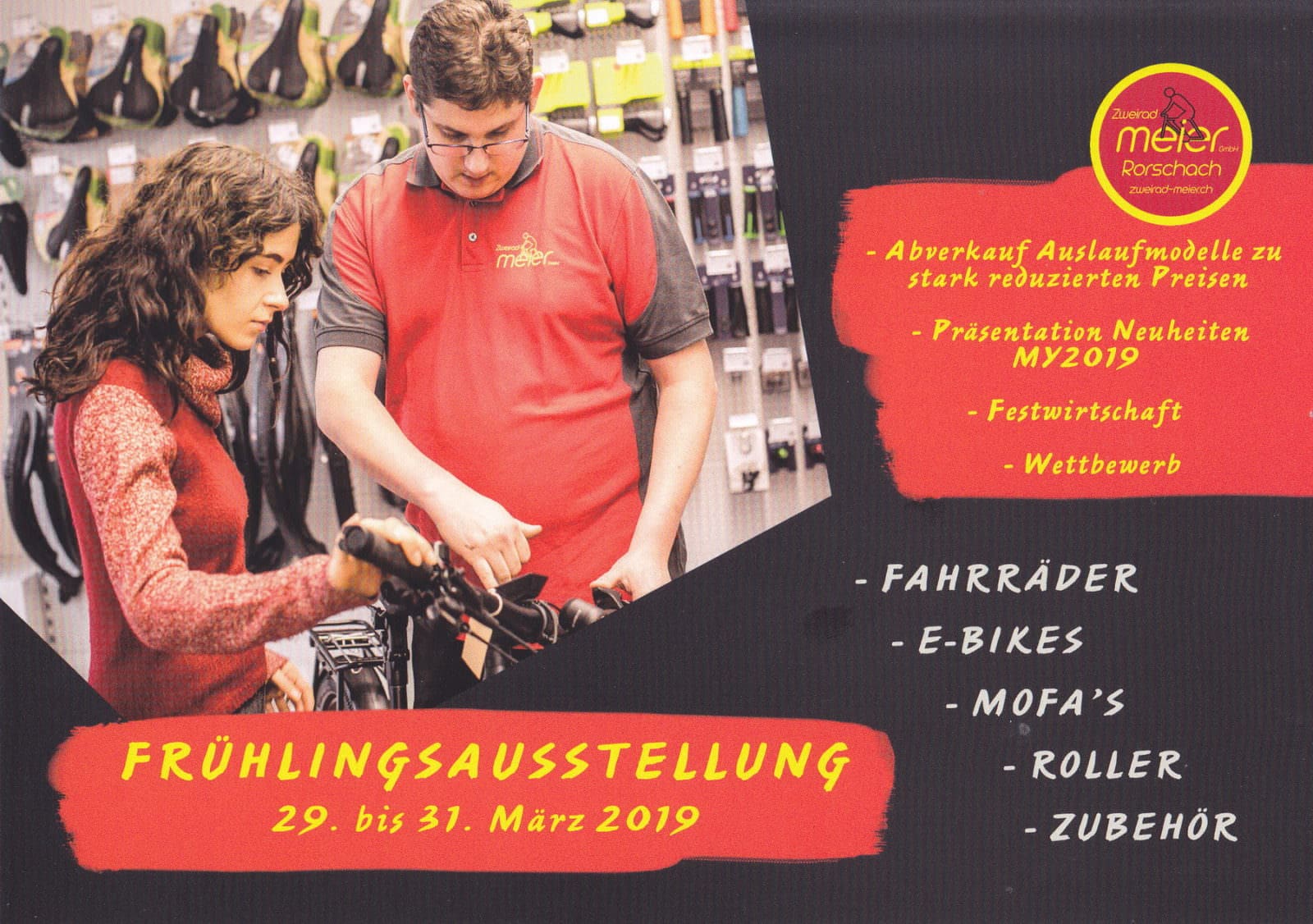 An diesem Wochenende hat Zweirad-Meier in Rorschach folgende Öffnungszeiten: Freitag 29.03.2019 08.00 -18.30; Samstag 30.03.2019 08.00 – 17.00; Sonntag 31.03.2019 09.00 – 17.00.