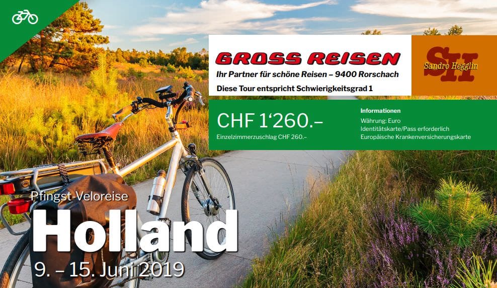 Mit Gross Reisen über Pfingsten nach HollandThemen:Gross ReisenPartnerRorschach 29. April 2019 - 12:28Gross Reisen in Rorschach macht das möglich: Eine Veloreise im wahrscheinlich flachsten Veloland der Welt …Teilen mit: Einen Link per E-Mail an einen Freund senden (Wird in neuem Fenster geöffnet) E-Mail Drucken (Wird in neuem Fenster geöffnet) Drucken Auf Facebook teilen (Wird in neuem Fenster geöffnet) Facebook Auf X teilen (Wird in neuem Fenster geöffnet) X Auf WhatsApp teilen (Wird in neuem Fenster geöffnet) WhatsApp Gefällt mir:Gefällt mir Wird geladen …Newsletter abonnieren Bitte dieses Feld leer lassenBitte wähle, ob Du über jeden neuen Beitrag sofort oder lieber jeden Morgen gegen 9 Uhr eine Zusammenfassung der neusten Beiträge erhalten möchtest.Liste(n) auswählen: Neues vom Echo (Zusammenfassung) Neues vom Echo (Sofortbenachrichtigung) Dieses Feld wird benötigt.Prüfen Sie Ihren Posteingang und den Spamordner, um Ihr Abonnement zu bestätigen.