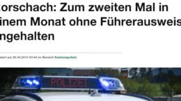 Gestern Donnerstagmorgen (25.04.2019), kurz nach 06:30 Uhr, hat eine Patrouille der Kantonspolizei St.Gallen auf der Burghaldenstrasse in Rorschach einen 43-jährigen Autofahrer kontrolliert. Der Mann war ohne Führerausweis unterwegs. Wie sich…