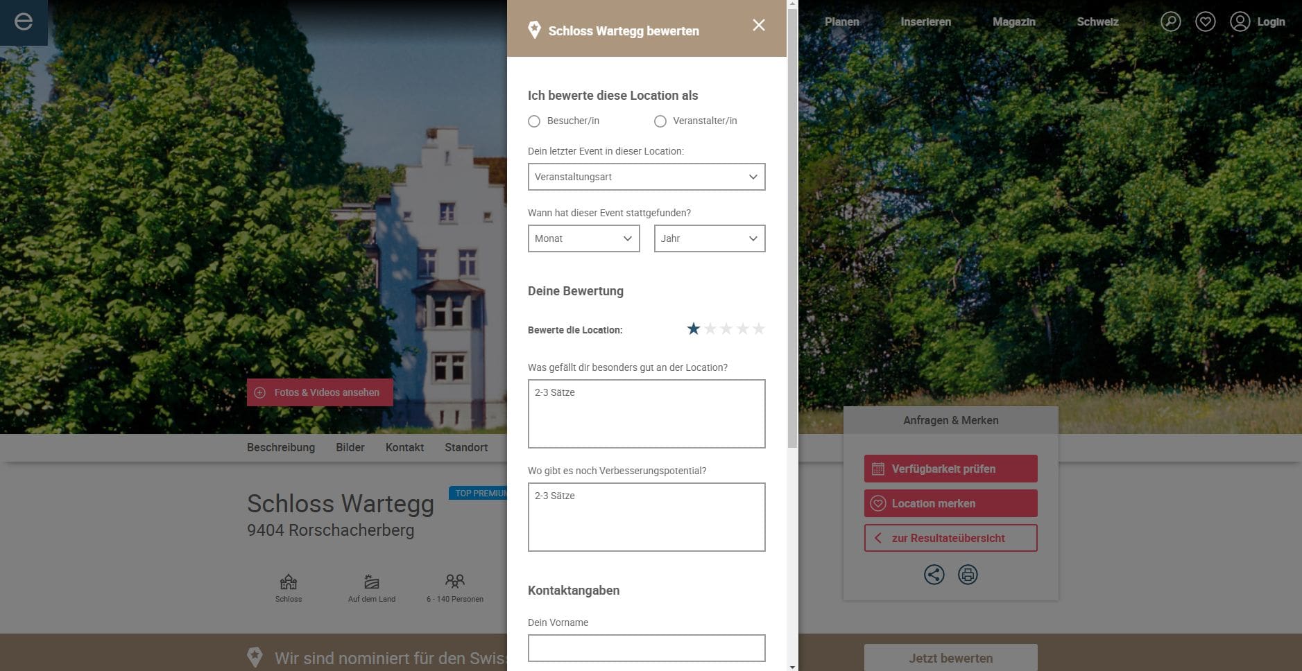 Das Schloss Wartegg hat zwei Nominationen für einen Swiss Location Award erhalten. Nominiert ist das Schloss Wartegg für die Titel „Beste Tagungslocation“ (letztes Jahr 5. Rang) und „Beste Hochzeitslocation“ (erstmalige Nomination). Wir können bei dieser Abstimmung das Schloss Wartegg aktiv unterstützen und so mithelfen, dass wir in unmittelbarer Nähe bald die schönste Location der Schweiz haben.