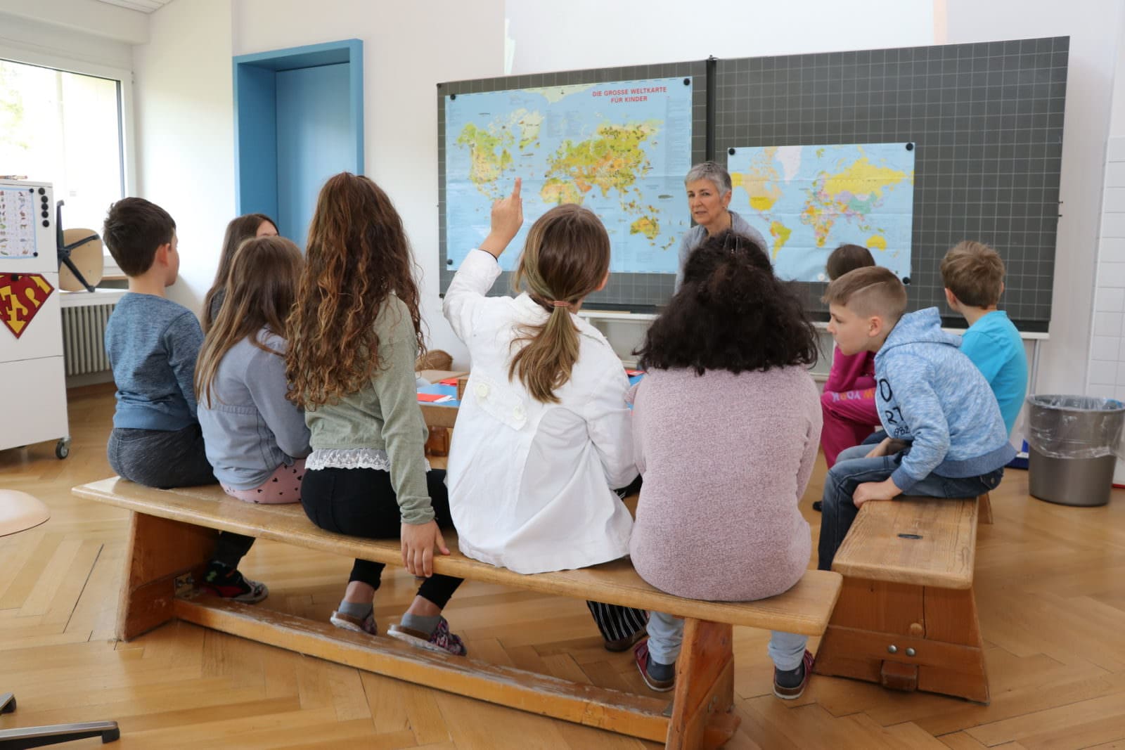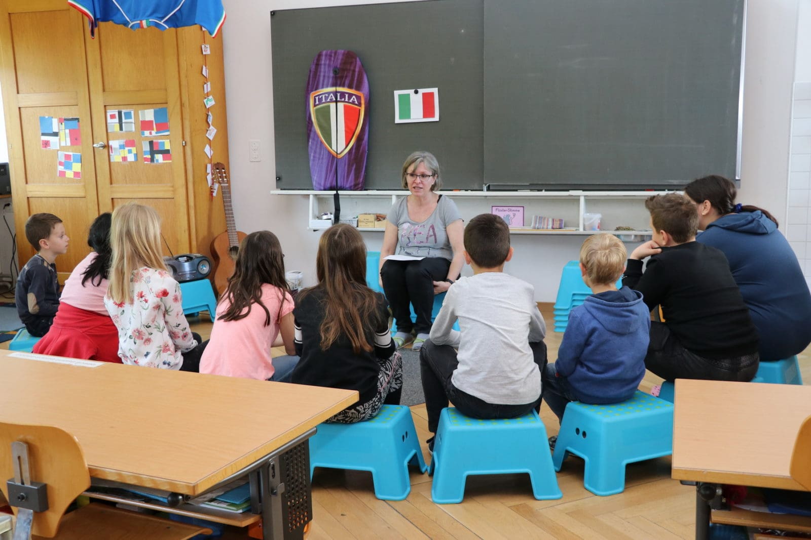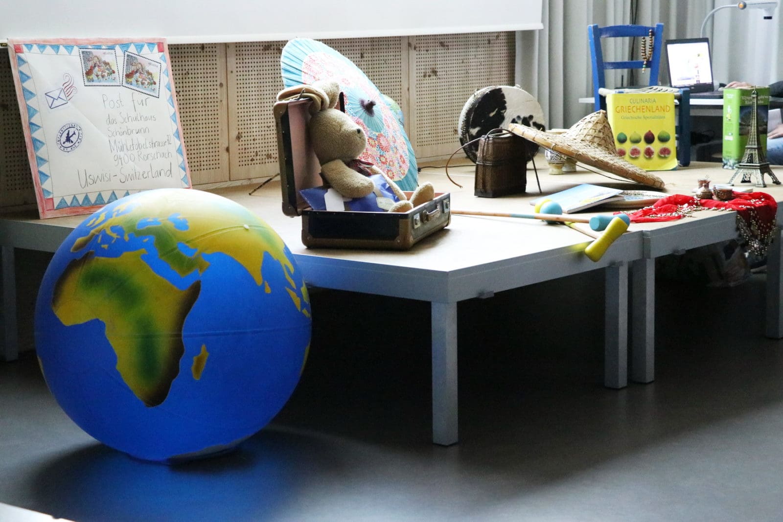 In dieser Woche findet im Schulhaus Schönbrunn die alljährliche Sonderwoche statt. Die Lehrkräfte haben mit grossem Aufwand, viel Kreativität und Einsatz ein super Programm zum Thema „Reise um die Welt“ für die SchülerInnen vorbereitet. Am Montag fand bei etwas garstig kühlem Wetter im Strandbad eine erste Begegnung mit anderen Ländern statt. Gestern war um 8 Uhr gemeinsamer „Reisestart“ in der Aula des Schönbrunn. Anschliessend begaben sich die alters- bzw. klassendurchmischten Gruppen in die verschiedenen Schulräume. Ende Woche sollen die rund 70 SchülerInnen möglichst viel über andere Länder und Kulturen mit nach Hause nehmen und Lebensweisen und Lebensräume von Menschen erschliessen und vergleichen können. Die Kinder führen während ihrer Reise ein Reisetagebuch. Sie machen jeweils zu einem Land einen Tagebucheintrag. Die eigens dafür vorbereiteten Hefte warten jetzt darauf, gefüllt zu werden.