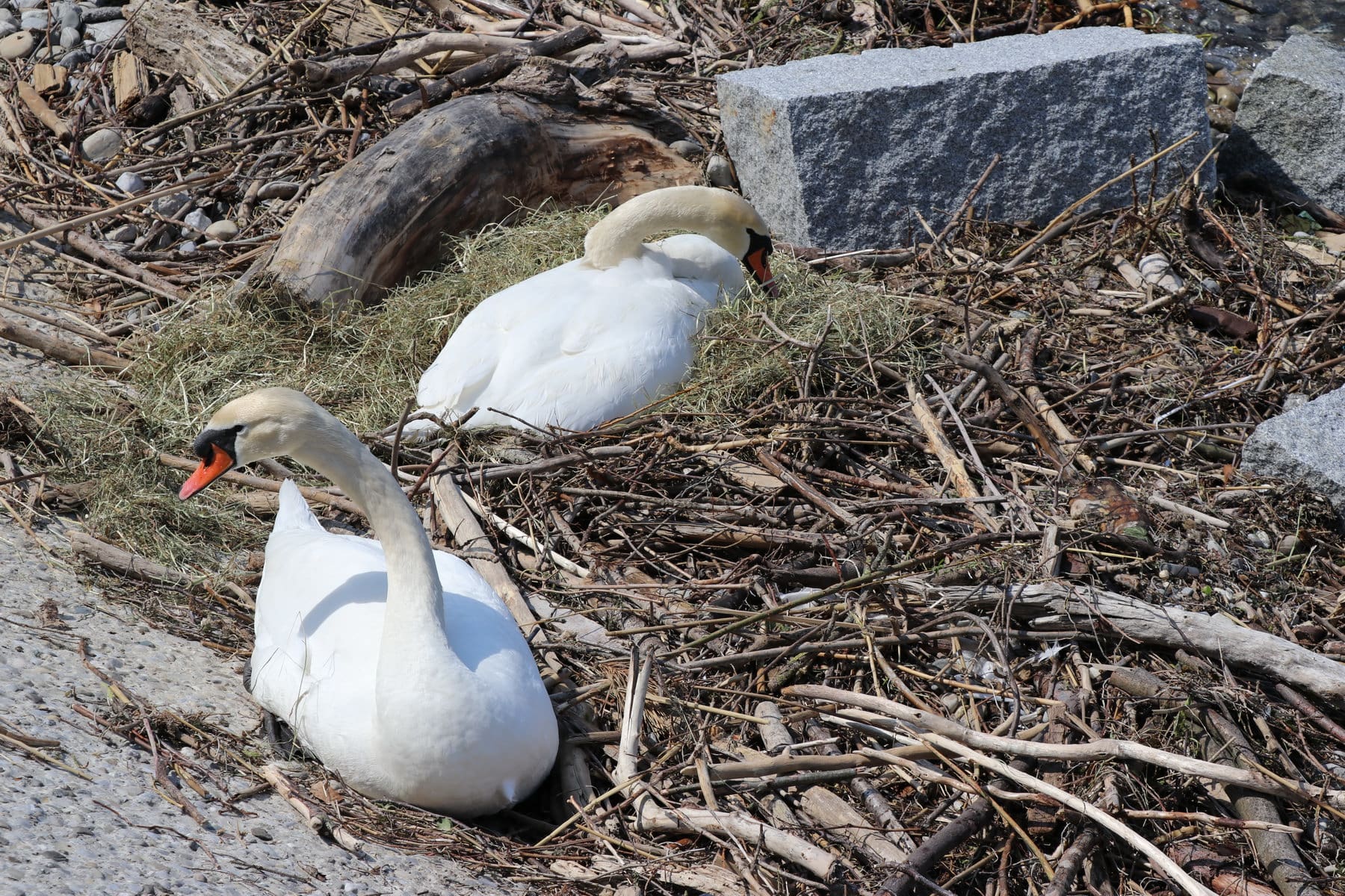 Die Rorschacher Schwäne faszinieren die Massen. Nachdem letzte Woche beim Seerestaurant 2 junge Schwänlein geschlüpft sind, ist bei dieser Familie wenigstens noch eins übrig geblieben. Beim Arionnest tut sich immerhin so viel, dass das Nest jetzt mit Stroh ausgelegt wird. Vielleicht ein Zeichen, dass da das Schlüpfen demnächst der Fall sein wird. Die hier gezeigten Bilder wurden um 15 Uhr aufgenommen.