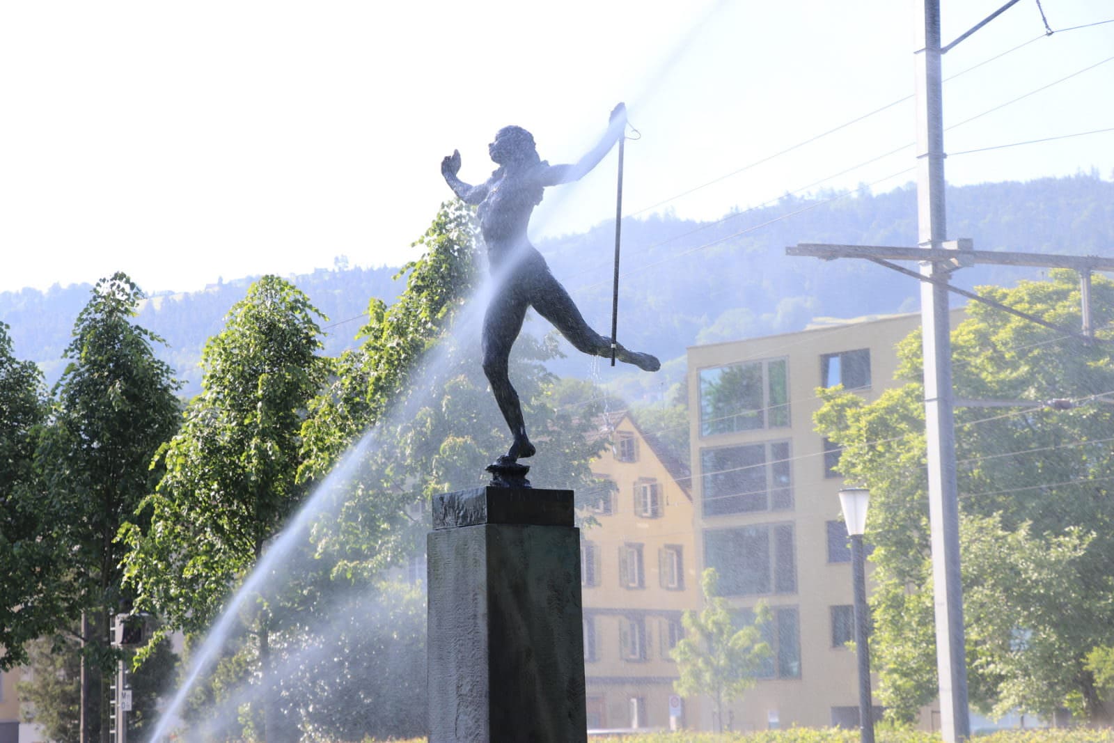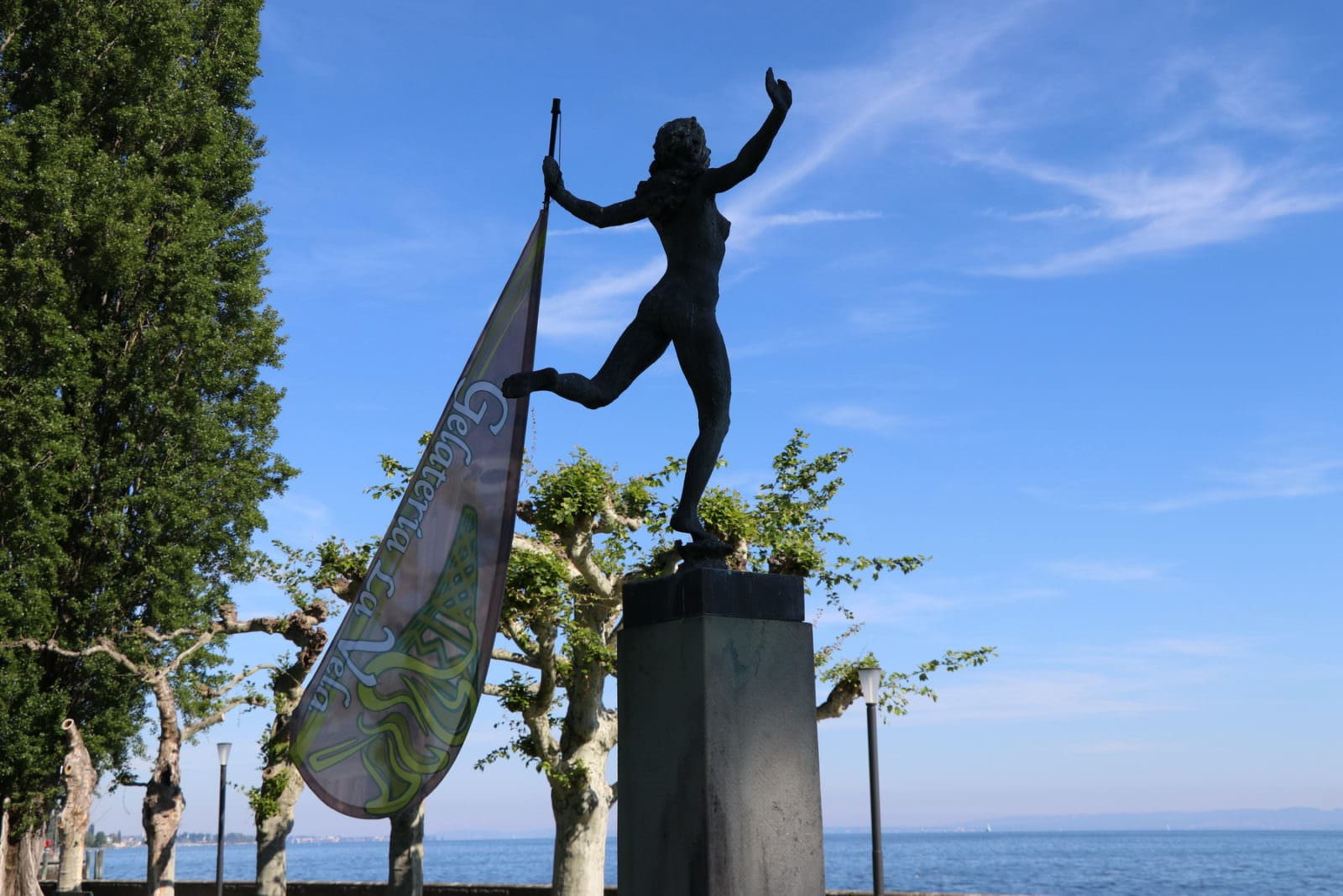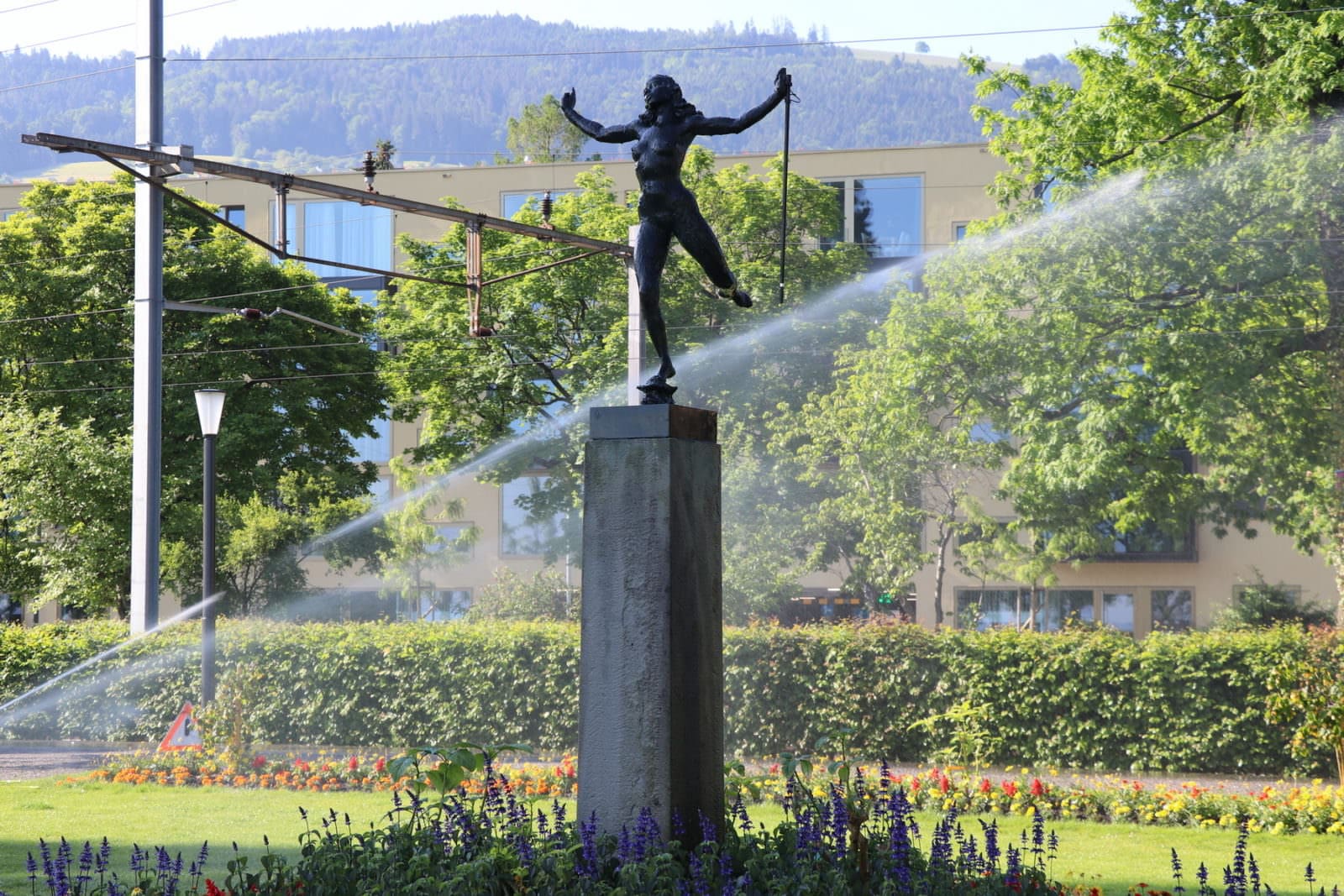 Nach dem „La Vela-Werbebanner“ gestern Sonntag baumelt da heute so etwas wie ein Wanderstock an Figur im Seepark. Es macht fast den Anschein, als ob „Die Schwebende“ da vermehrt ins Zentrum rückt. Wäre ihr ja eigentlich auch zu gönnen, da sie sonst kaum noch gross wahrgenommen wird. Ob das aber allen passt ist fraglich.