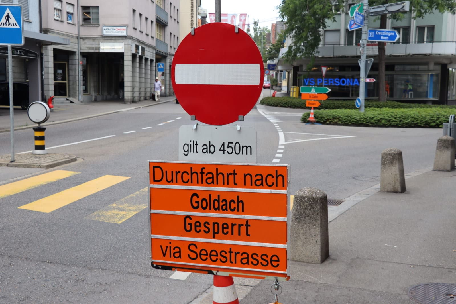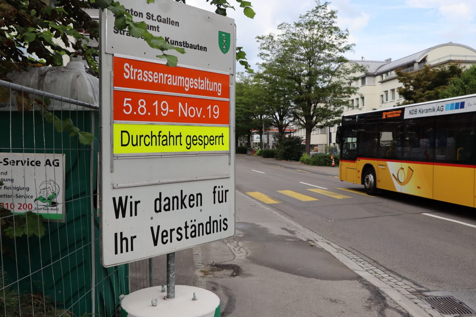 Seit heute ist der Bahnübergang Signalstrasse gesperrt. Das wird bis zum 23. August so bleiben. Doch Rorschach hat ab heute noch eine weitere Baustelle. Das kantonale Tiefbauamt gestaltet die Kantonsstrasse zwischen dem Landhauskreisel bis zur Löwenstrasse in Rorschach um. Seit heute sind die Arbeiten im Gange. Während rund 18 Wochen ist mit Verkehrseinschränkungen und Umleitungen zu rechnen. Das Projekt sieht vor, die Fahrbahn zu verschmälern und den Gehweg zu verbreitern. Für die bergwärts fahrenden Velofahrerinnen und Velofahrer entsteht ein Radstreifen. Die Bushaltestelle in Richtung Goldach wird zu einer Fahrbahnhaltestelle. Die Haltestelle in Richtung Rorschach wird aufgrund der Umgebungsgestaltung des Löwengarten-Areals um rund 60 Meter verschoben. Fazit: Man tut gut daran, die zahlreichen Signalisationen zu beachten.
