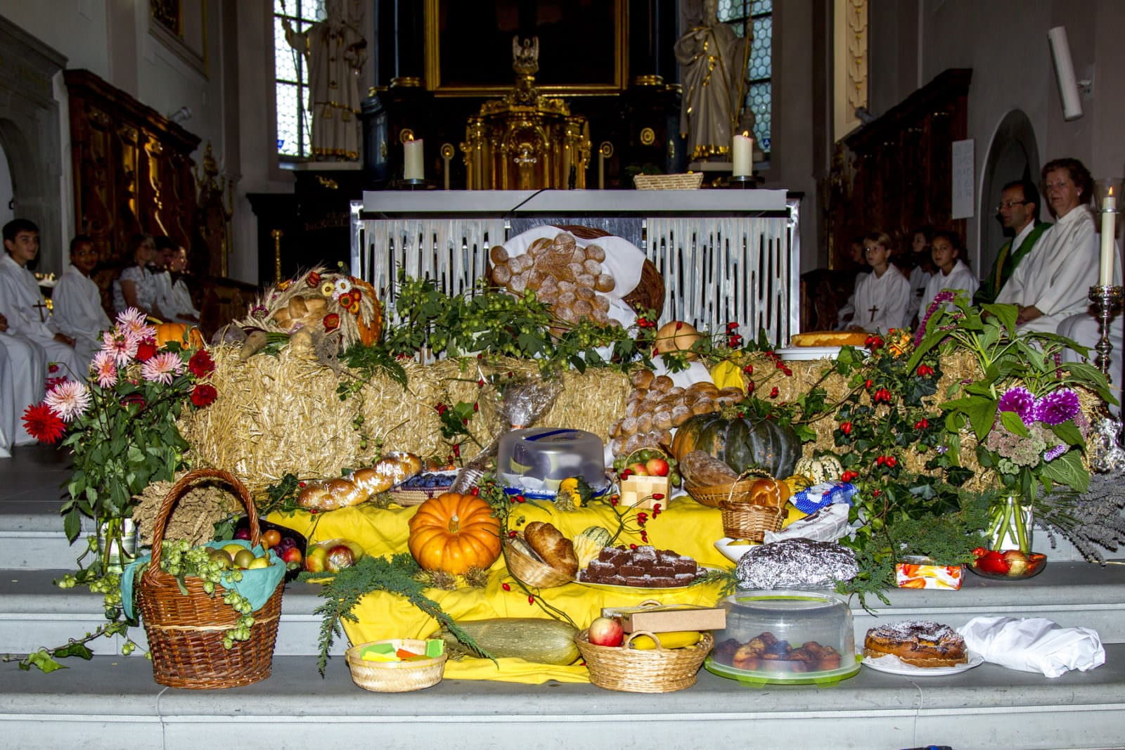 Zur Mitgestaltung des Chorraumes bitten wir sie, ihre Gaben mitzubringen. Früchte und Gemüse, Nüsse, Brot oder Käse oder ein Kuchen sind willkommen. Im Anschluss an den Gottesdienst geniessen alle frischen Apfelsaft und teilen die mitgebrachten Gaben vor der Kirche oder bei schlechtem Wetter im Zentrum. Alle, die eine Gabe mitbringen, versammeln sich vor dem Gottesdienst vor der Kirche. Gemeinsam werden die Gaben vor Gott getragen. Es besteht auch die Möglichkeit, Ihre Gaben vor der Kirche abzugeben. Musikalisch begleitet wird die Feier vom Akkordeon Orchester Rorschach unter der Leitung von Elfi Künzle“, schreiben die InitiantInnen.