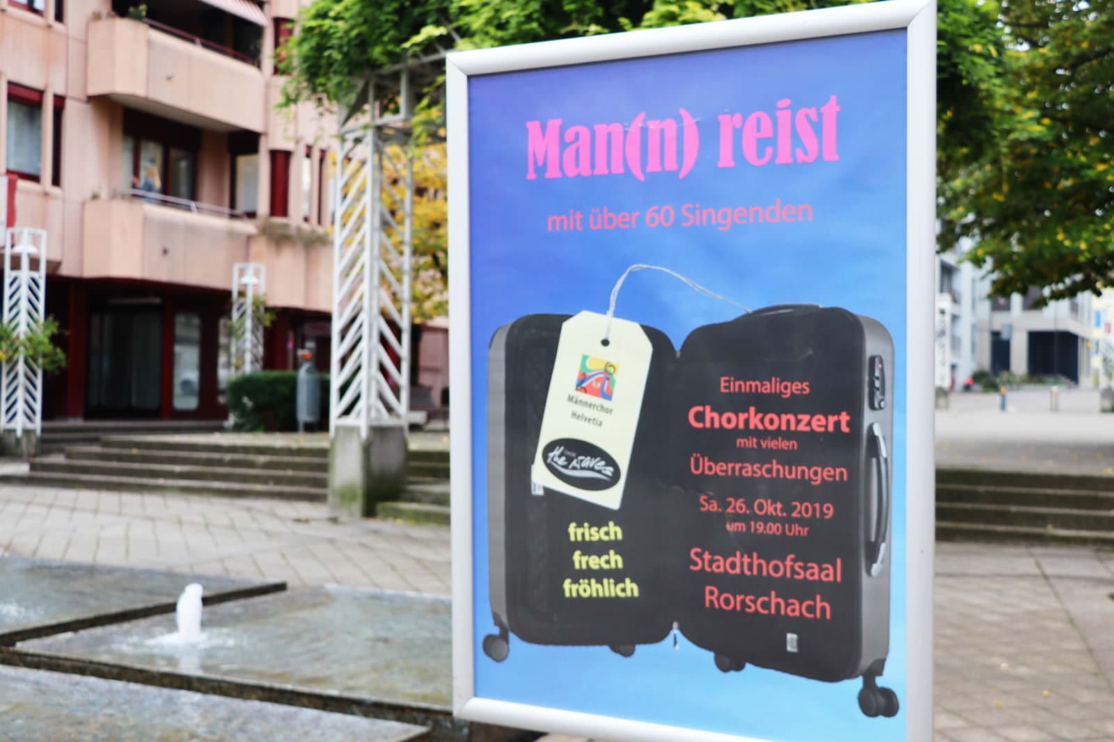 Am 26. Oktober lädt der Männerchor “Helvetia” Rorschach und der Chor “The Waves” aus Goldach zu einem grossen Chorkonzert in den Stadthofsaal Rorschach ein. Unter dem Titel “Man(n) reist” werden die beiden bekannten Chöre mit über 6o Sängerinnen und Sängern den Stadthofsaal beschallen. Das abwechslungsreiche Programm soll das Publikum mit einer bunten Mischung traditionellen und modernen Liedern, bespickt mit überraschenden Elementen frisch – frech – fröhlich unterhalten. Ein genussreicher Konzertabend ist garantiert.