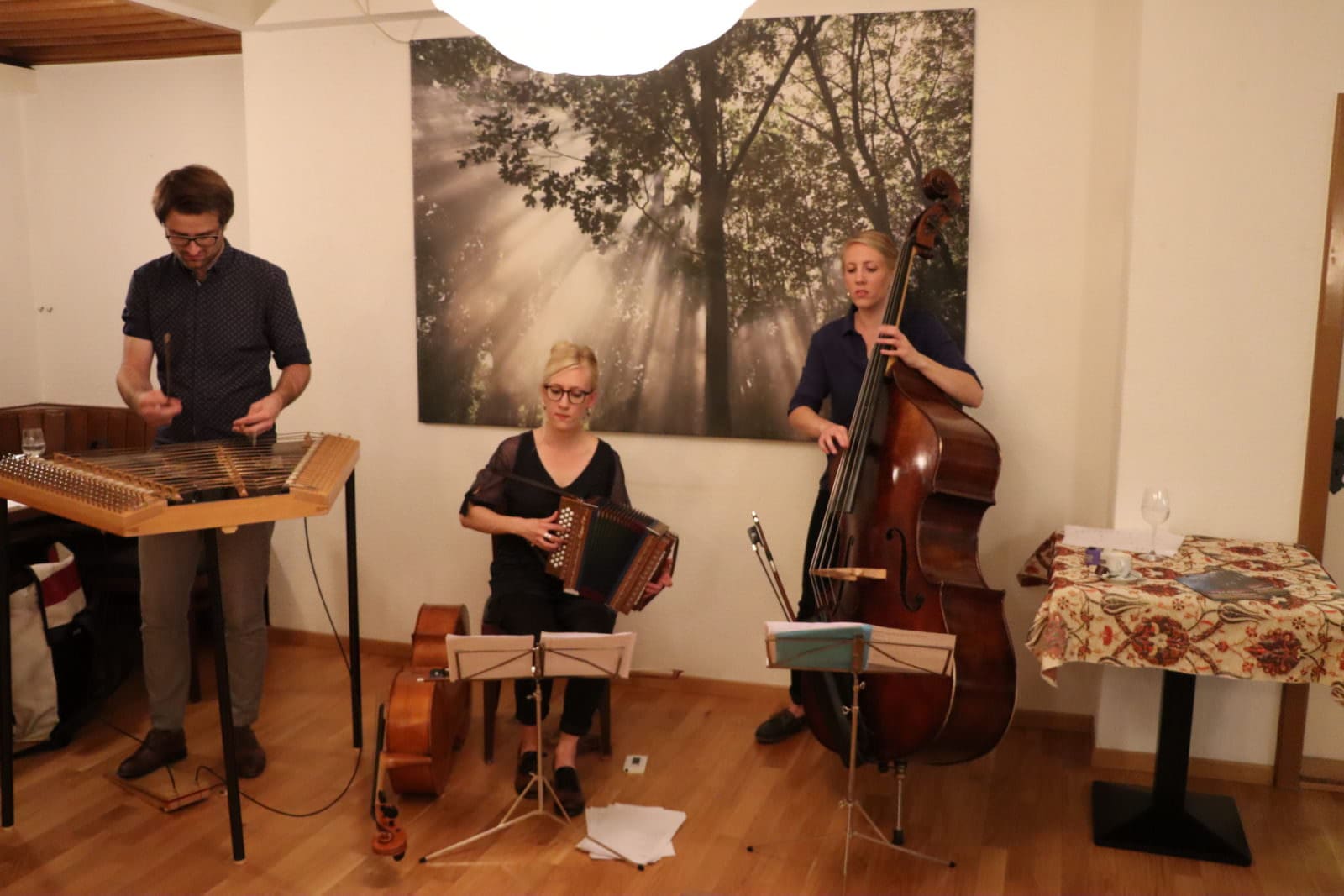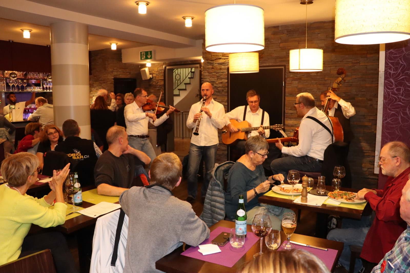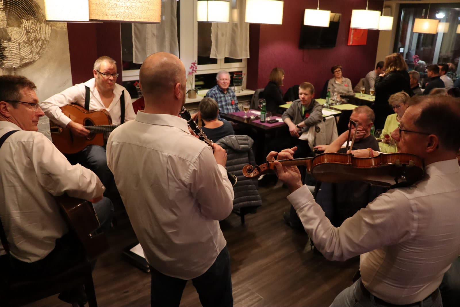 Für uns ein Highlight und der krönende Abschluss, war Cafe Moustache im Münzhof. Vermutlich war die Besetzung erweitert mit Geige und Klarinette. Die ganze Musik war ein Genuss, aber das „Zwiegespräch“ zwischen Geige und Klarinette hat uns vom Hocker gerissen. Leider haben nicht alle Zuschauer ihre Lautstärke an die hochstehende Musik angepasst.