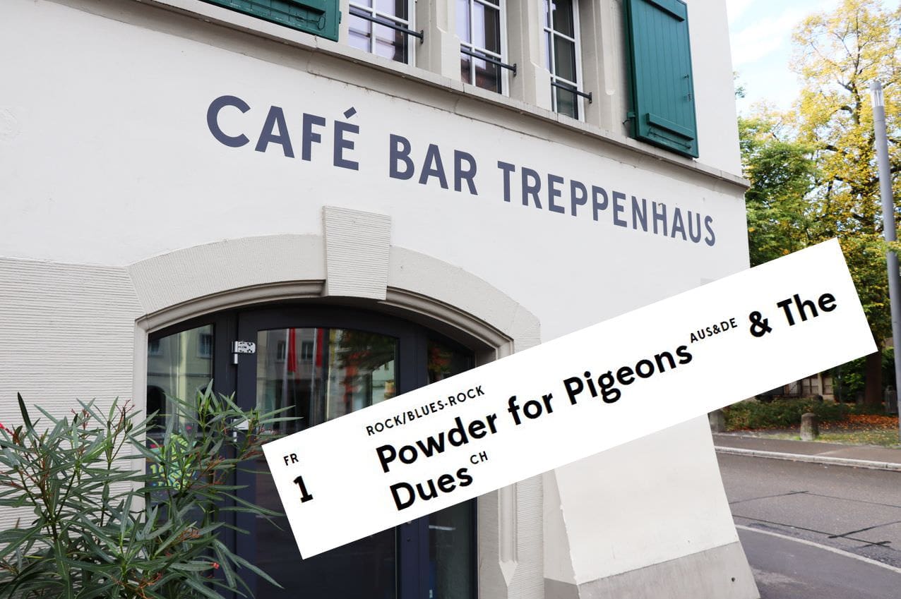 Das Rock-Duo mit Sänger & Gitarrist Rhys aus Australien und Drummer Meike aus Deutschland macht Sound inspiriert von Bands wie Queens of the Stone Age, Monster Magnet oder Faith no More. „This two piece has a presence of a five man band“ (Rock Hard Magazine). Auf ihrer Europa-Tour beehren Powder of Pigeons das Treppenhaus mit ihrem neuen Album „Over & Out“.