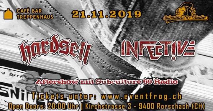 Infective kommen aus Winterthur und machen seit 2017 ihren Punkrock, schön schrabblig und ohne Schnirkel geht es teilweise prollig wie auch frontal in your face zur Sache. Der Sänger Shalel hat eine unverkennbare Stimme, sodass dort kein Pogo ruhig bleibt.