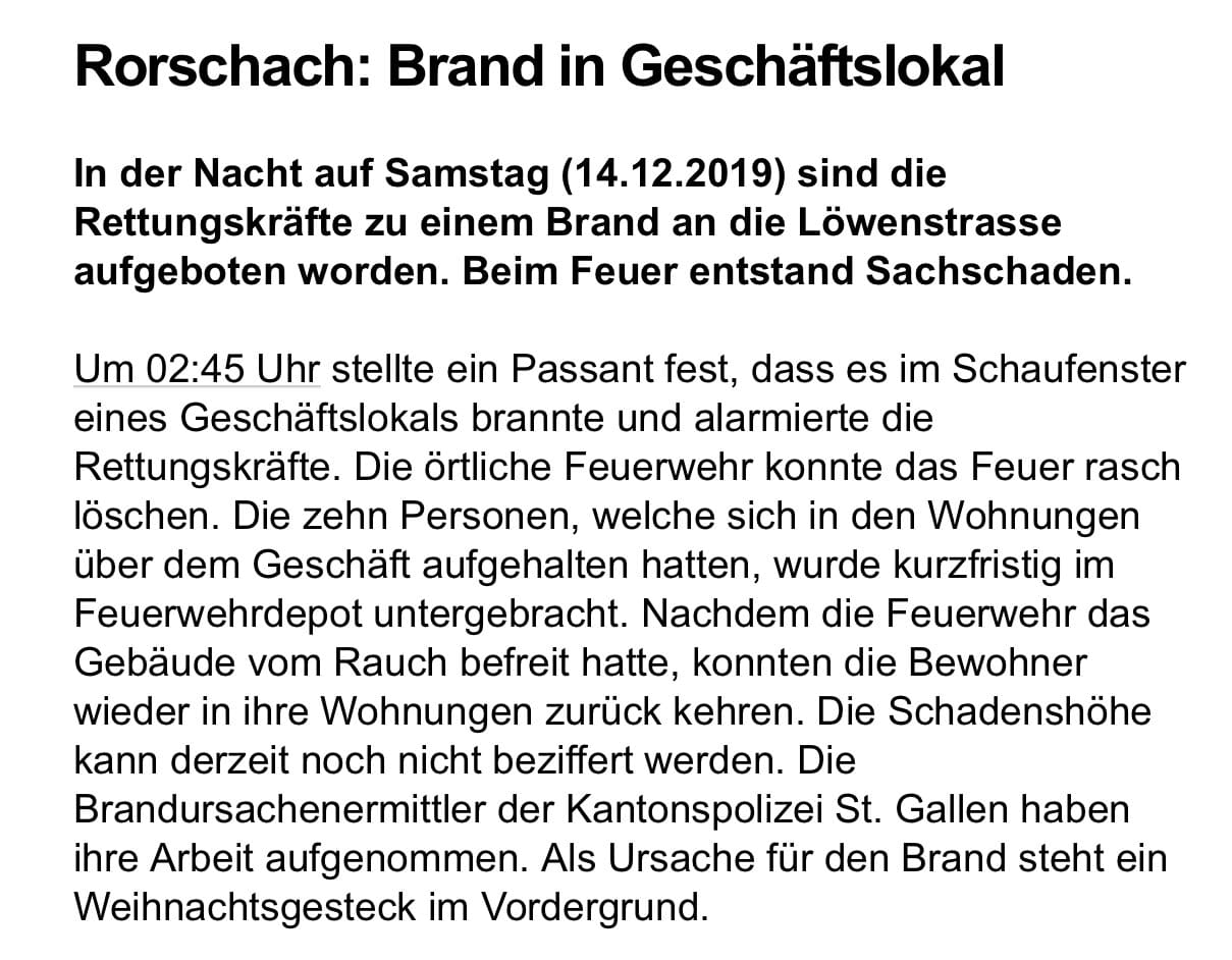 Brandeinsatz diese Nacht an der Löwenstrasse 8.