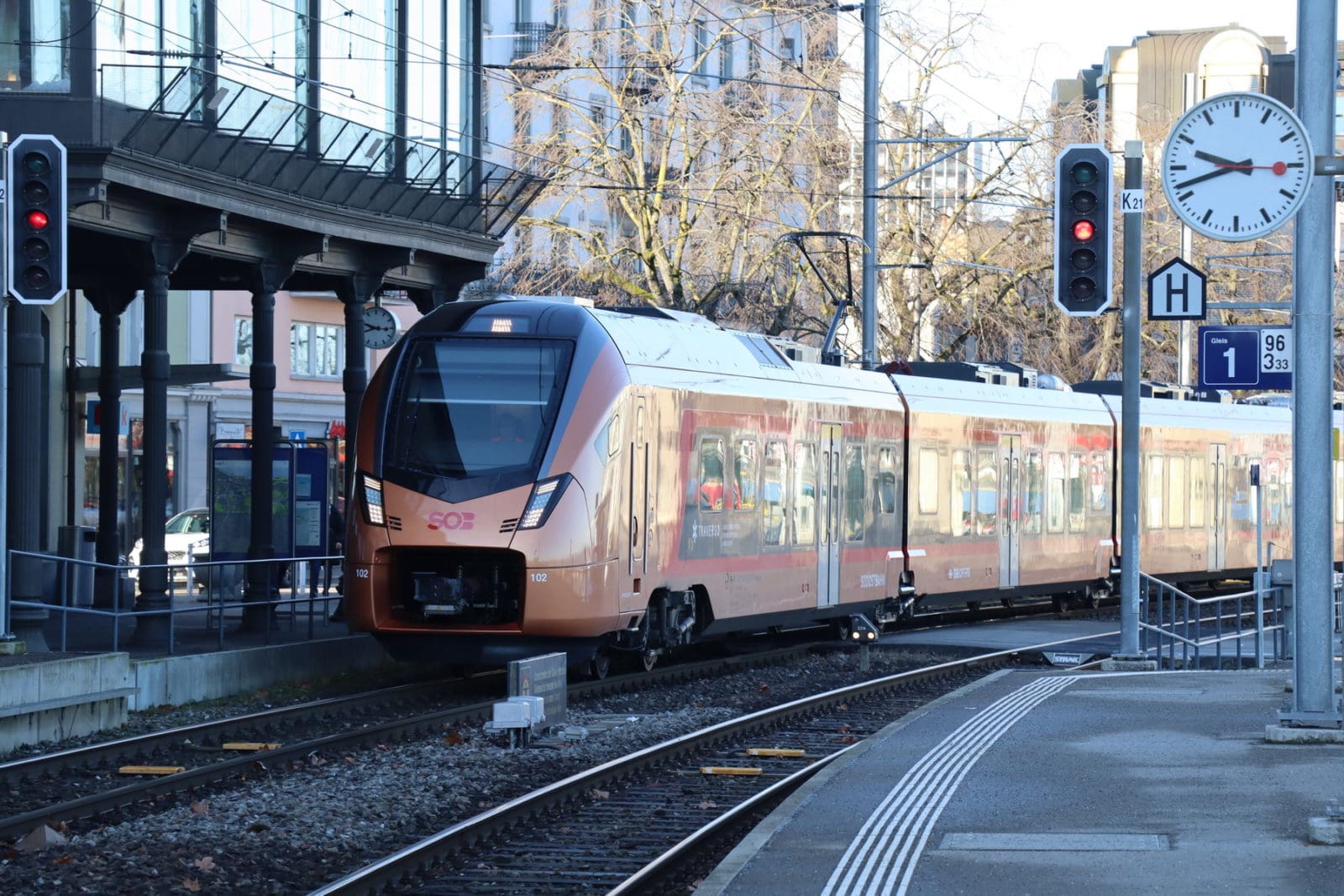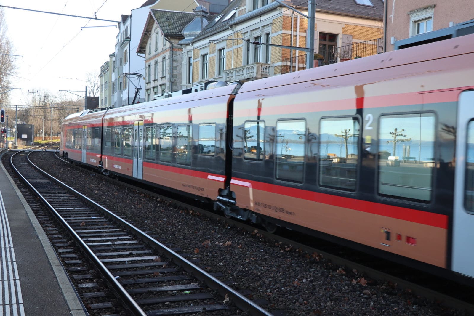 Heute passierte eine Komposition des Voralpenexpress verstärkt mit einem SOB-Flirt 3 auf einer Testfahrt unsere Hafenstadt. Eine schöner Farbtupfer in der sonst doch eher einfarbigen Bahnlandschaft auf der Seelinie. Die Züge sind sehr gefällig eingerichtet und verfügen über die neusten technischen Errungenschaften. Mit dem kupferfarbenen Aussenanstrich ist der Voralpenexpress auch optisch ein Hingucker. Schade, dass er unsere Hafenstadt nicht fahrplanmässig bedient. Eine Fahrt mit dem Voralpenexpress von St. Gallen nach Luzern lohnt sich aber allemal…