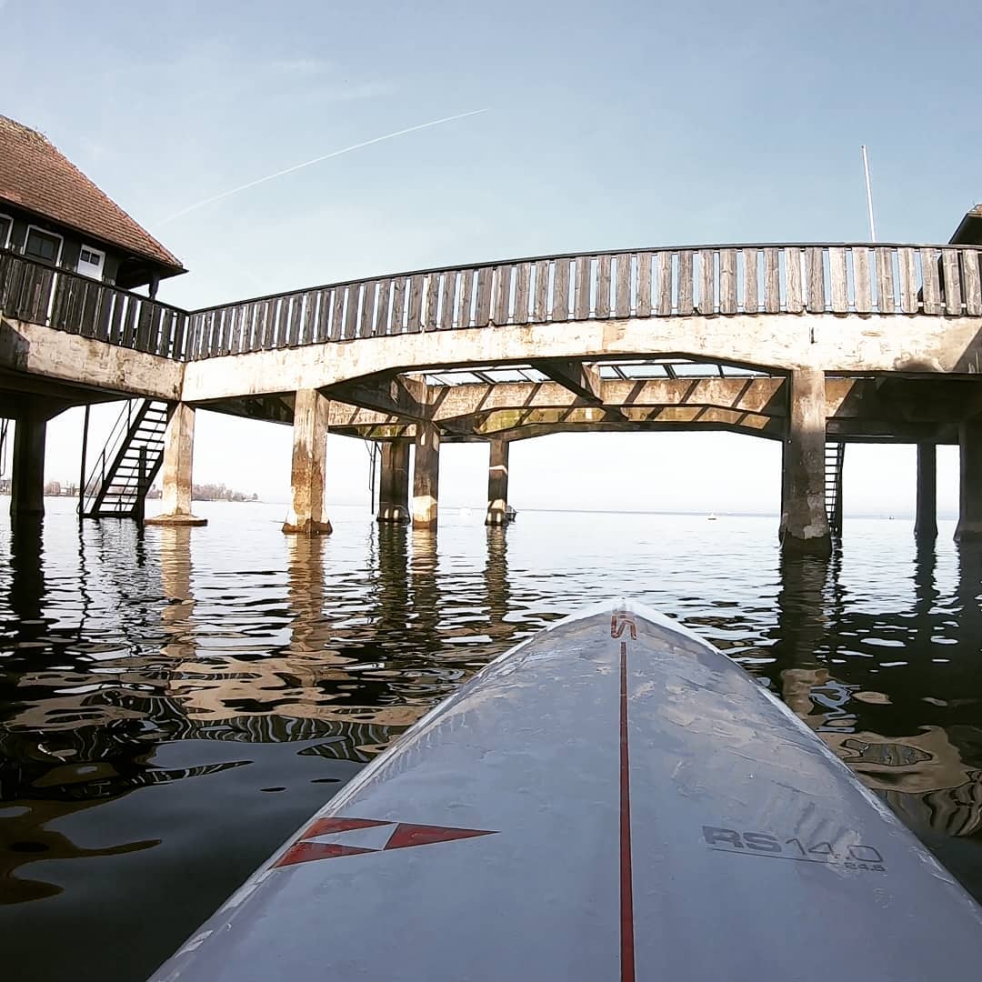 Dario Aemisegger organisiert in Rorschach die Strandfestwochen und ist auch passionierter StandUp-Padler. Heute morgen war er in Rorschach unterwegs und hat dieses Bild unter der Badhütte auf Instagram gepostet. Wunderbarer Schnappschuss.