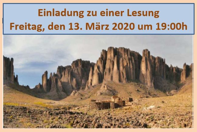 Andrea Eugster und Justin Koller laden auf den 13. März 2020 zu einer Lesung ein über Erlebnisse in einem Land, das uns aus unterschiedlichen Sichtweisen interessiert. Beide haben einen spannenden Abend zusammengestellt aus Texten, Dialogen, Bildern, Musik und einem anschliessenden Apéro. Näheres im Flyer im Anhang.