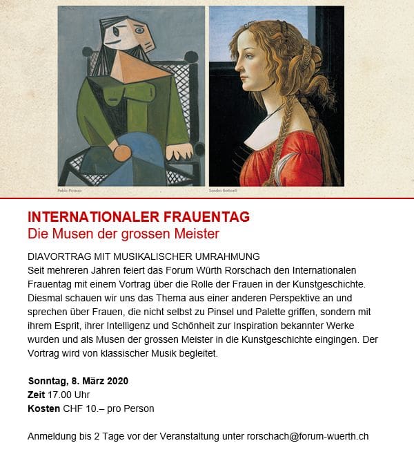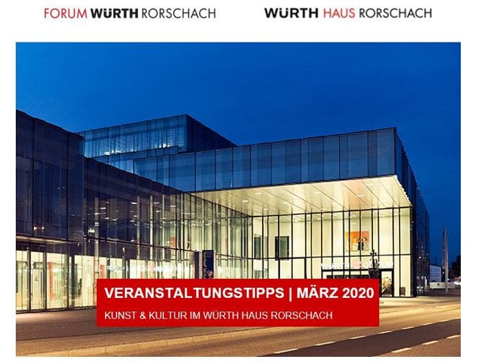 Erneut ein sehr breites und attraktives Programm, welches das Würth Haus Rorschach im Monat März 2020 bietet. Start ist ja heute mit der Multimediashow „Von Shanghai nach Tibet„, über die das Rorschacher Echo bereits am letzten Donnerstag berichtet hat. Weitere Highlights für den Monat März findet man nachstehend.