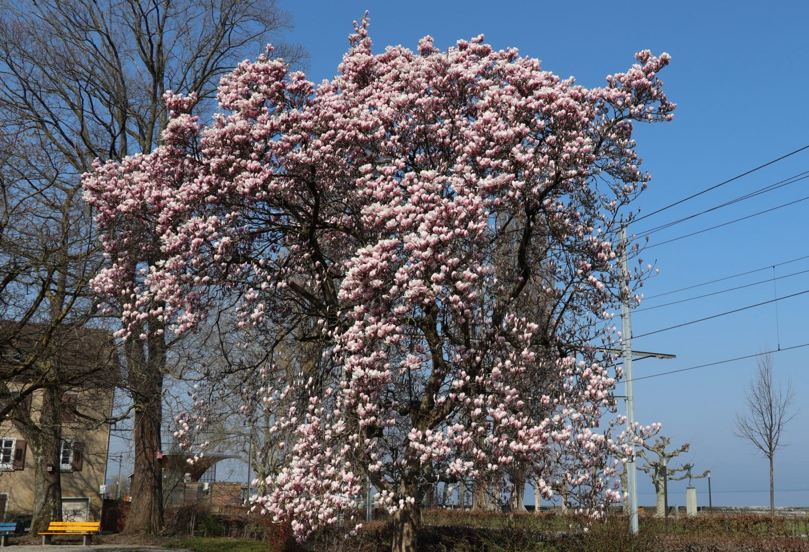 Ein Morgenspaziergang der besonderen Art: 30 Minuten raus, keinerlei Kontakte, vier zaghafte „Hallo und Hoi“ mit maximalem Sicherheitsabstand, einmal die Hände desinfiziert (ohne jemand berührt zu haben) und ein paar Fotos geschossen. Und daheim die Kamera auch gleich wieder geputzt … Komische Zeiten, aber der Natur scheint dies völlig egal zu sein. Und auf die Gefahr hin, dass ich mich wiederhole: Der Magnolienbaum im Stadtgarten ist jetzt einer der schönsten Bäume im Städtchen. Voilà:
