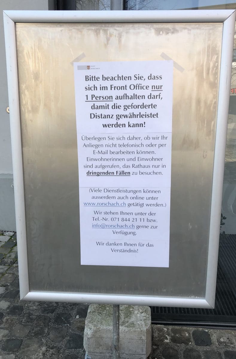 Aussergewöhnliche Zeiten bedingen auch aussergewöhnliche Massnahmen. Die Stadt Rorschach beschränkt den Zugang zum Front Office und ruft zum Webkontakt und zum Mailverkehr auf. (Bilder: pd sk)