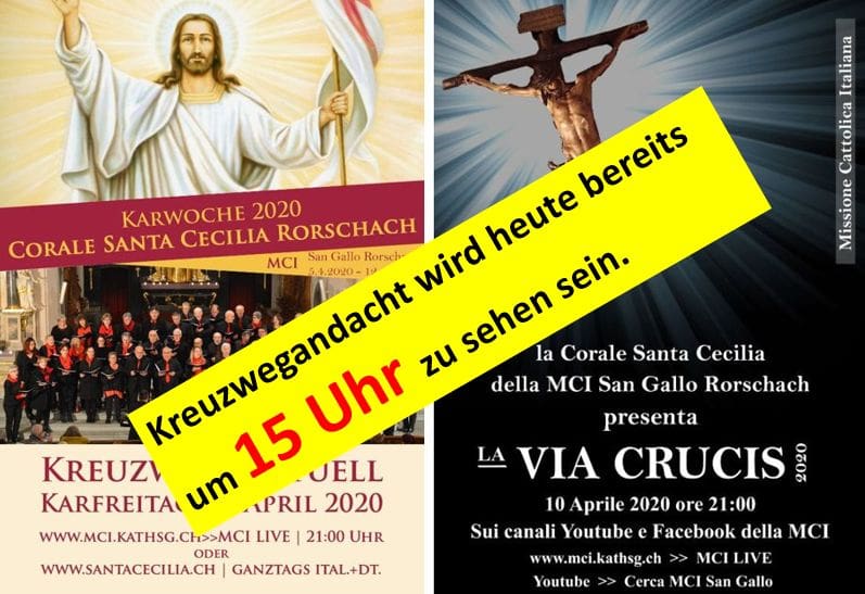 Don Piero hat kurzfristig die Streaming-Kreuwegandacht von 21:00 Uhr auf 15:00 Uhr vorverschoben. Den heutigen Hinweis mit den Webseiten findet man hier (da stimmen jetzt einfach die Zeiten nicht).