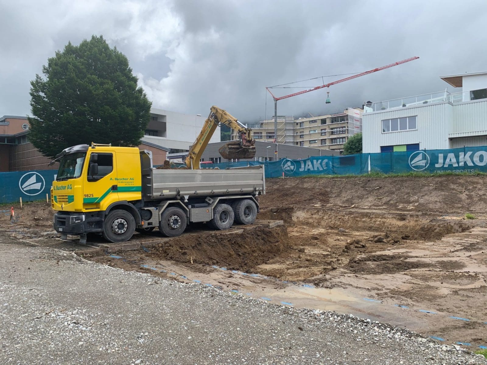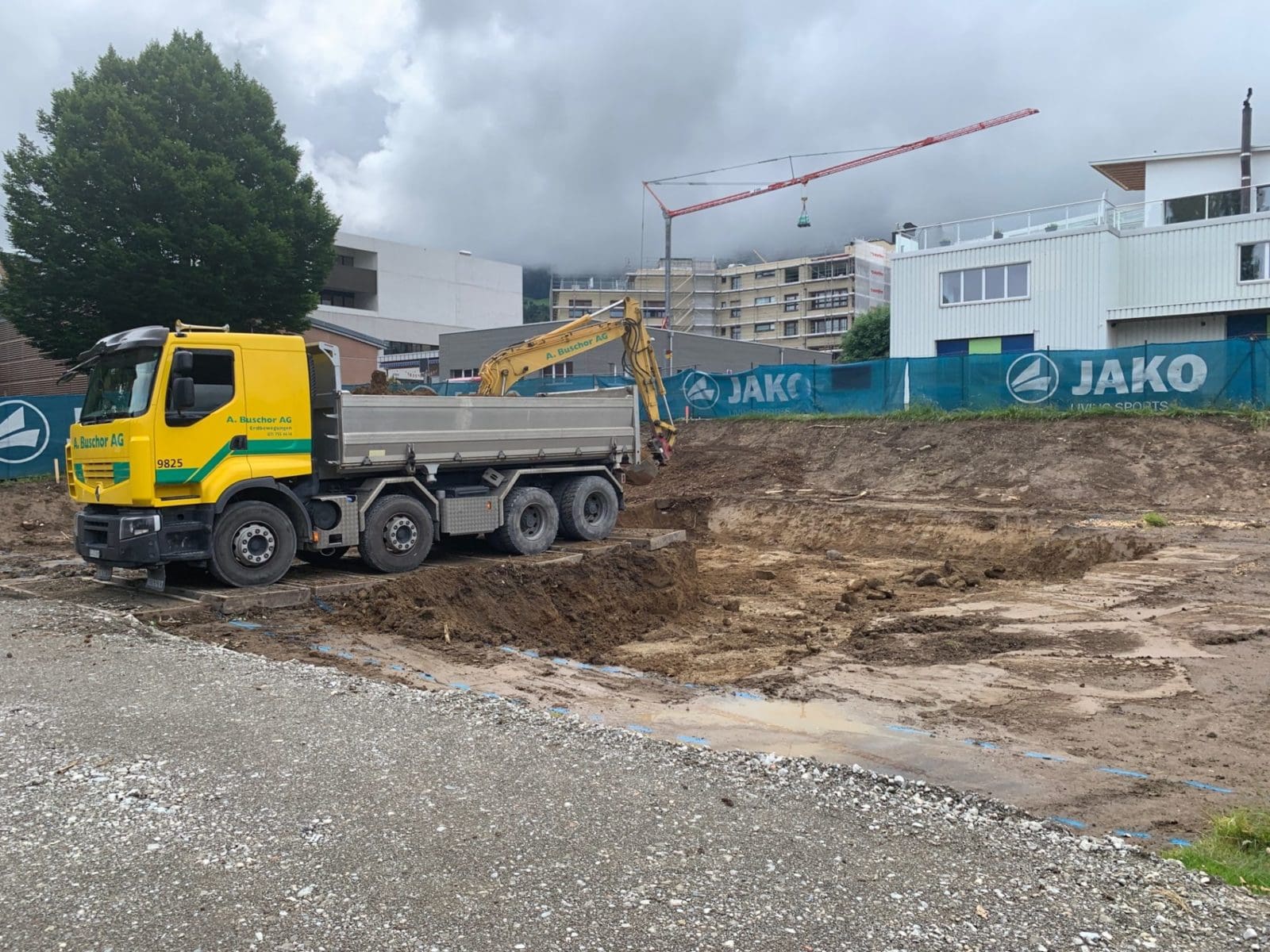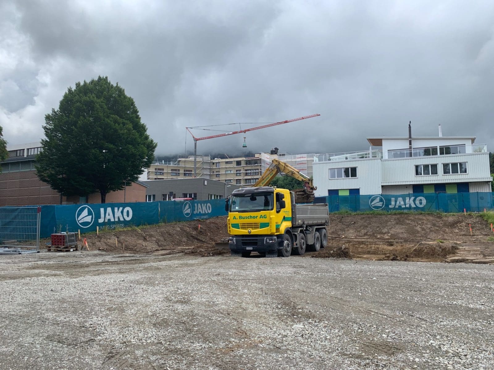 Die Arbeiten für den Neubau Garderobengebäude und Gesundheitszentrum auf dem altehrwürdigen Pestalozziplatz in Rorschach nehmen Fahrt auf. Die markanten Bäume auf dem südöstlichen Teil des Areals sind bereits Geschichte.