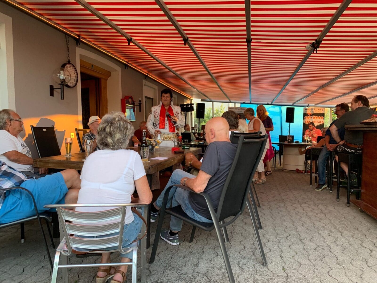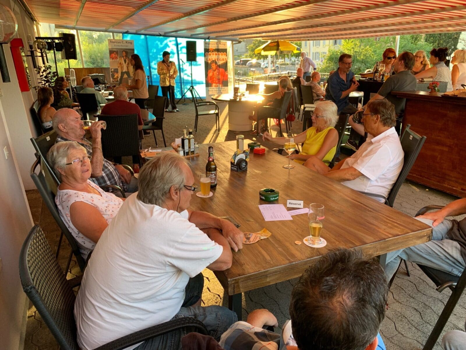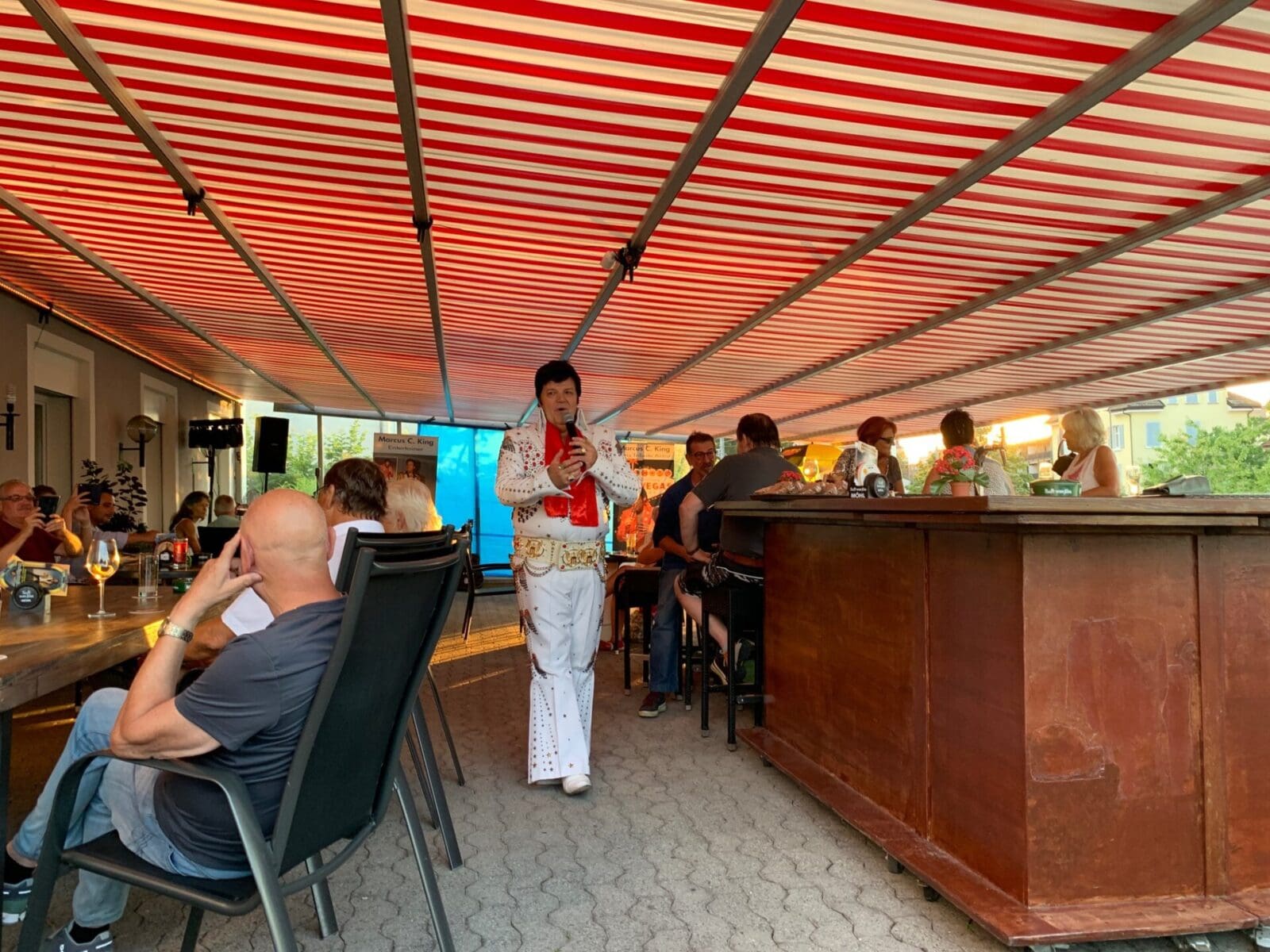 Gestern hat Marcus C. Held nicht nur als Beizer gewirkt, sondern auch als Entertainer. Im Rahmen von „Rorschach – da isch Musig“ hat er seine Gäste mit dem Soloprogramm unterhalten. Morgen Samstag am Bundesfeiertag bleibt der Schweizerhof geschlossen. Am Sonntag fetzen dann ab 10 Uhr wieder Flip-chair zum Frühschoppen.