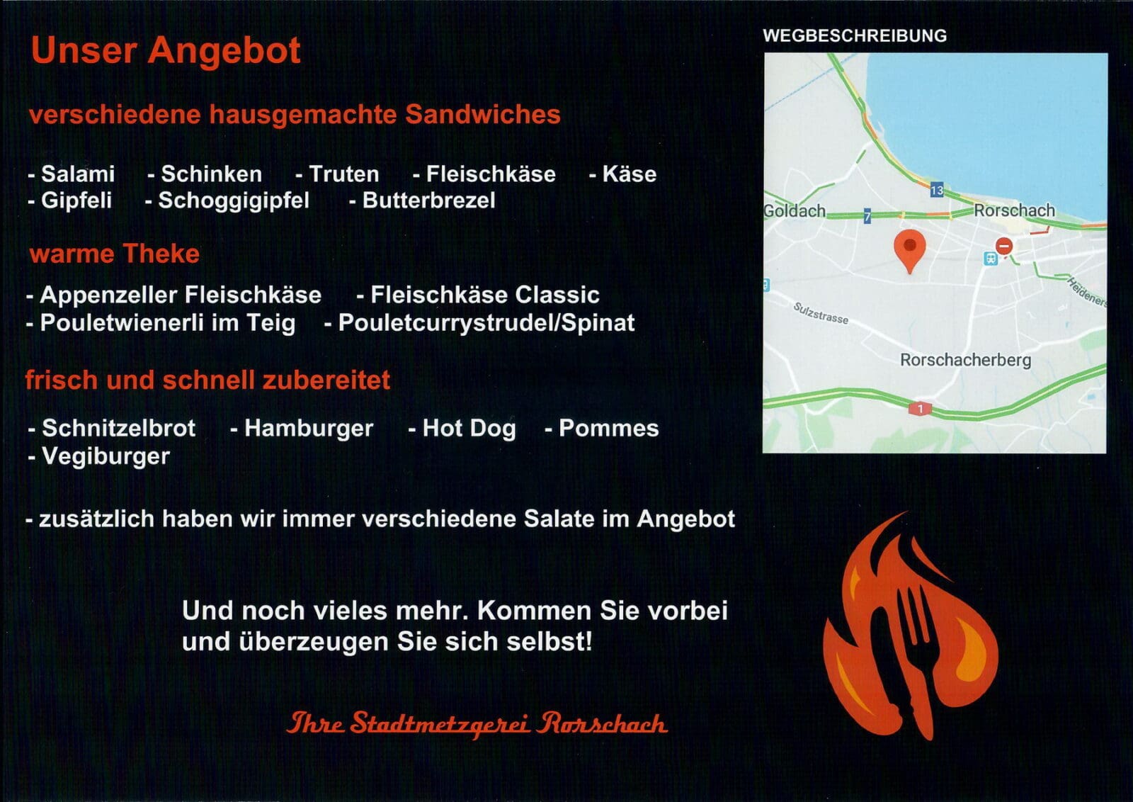 Am nächsten Montag ist es soweit: Die Rorschacher Stadtmetzgerei wird im Nestlé Shop Rorschach an der Blumenfeldstrasse 8 einen Take Away-Shop betreiben. Das Rorschacher Echo wird dann zeigen, wie das aussieht.