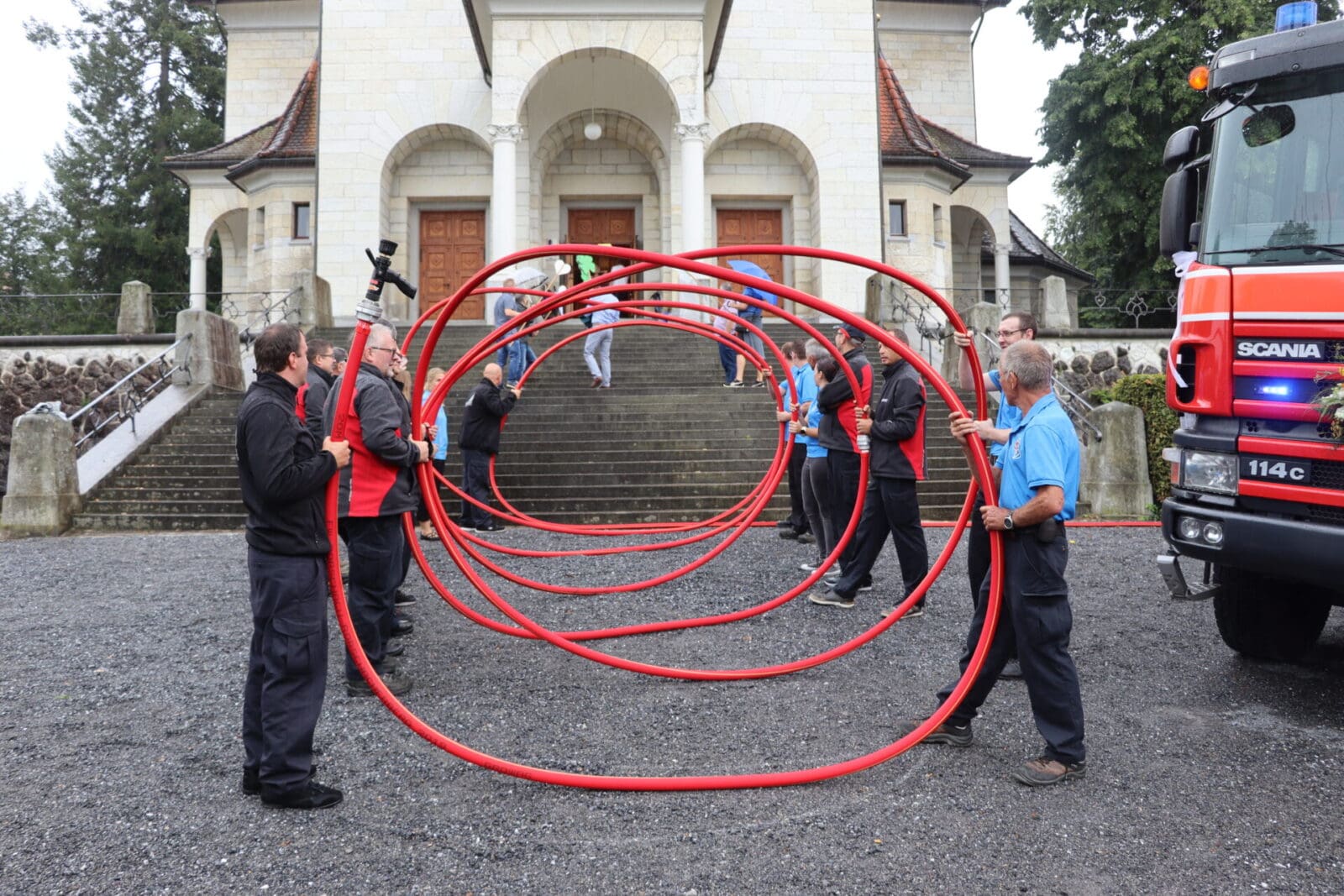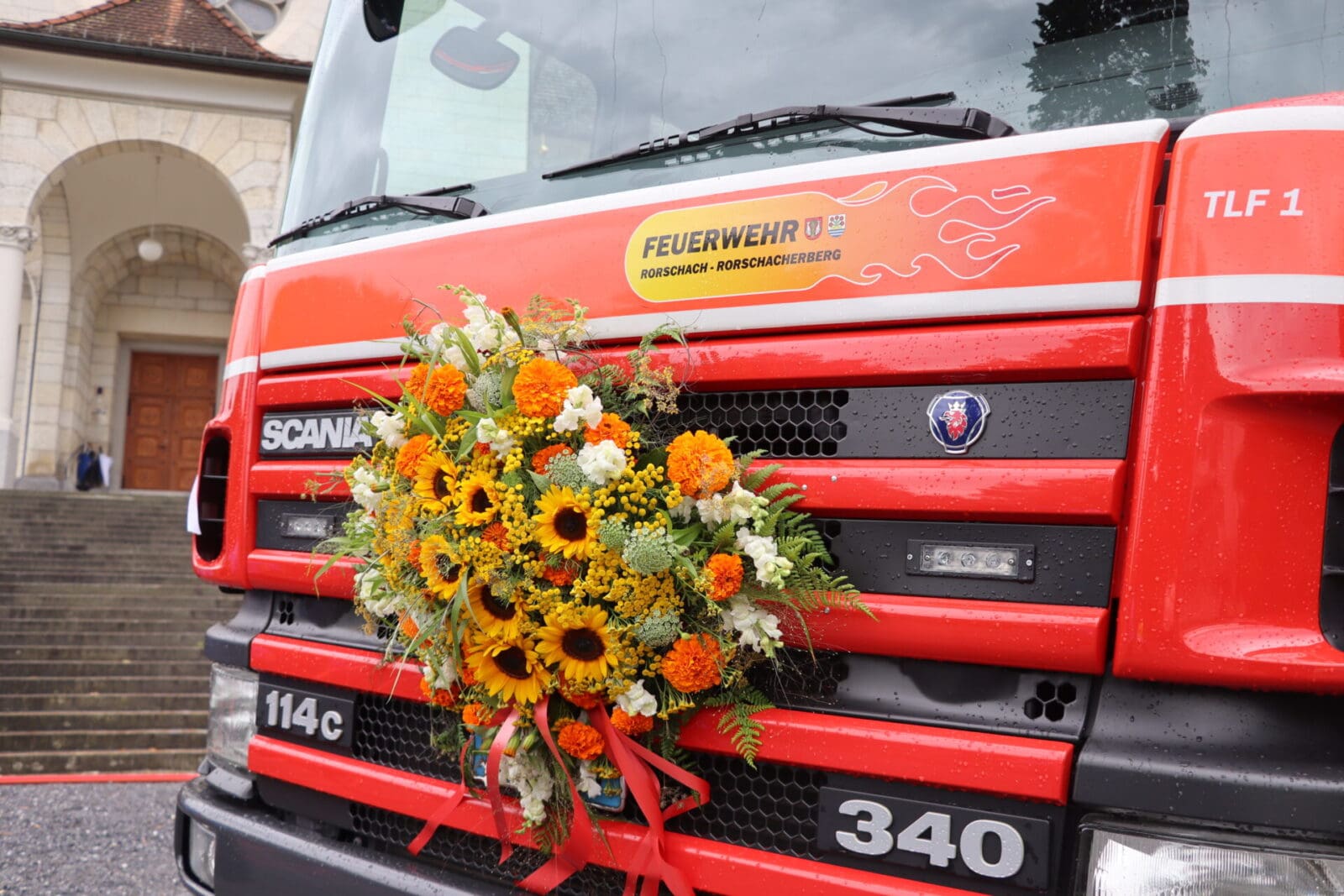 Und die Feuerwehr Rorschach-Rorschacherberg war gestern nicht nur vor der Kirche präsent, sondern auch am Vormittag im Strassenbild erkennbar. Der Grund ist der, dass die Feuerwehr wieder den ordentlichen Übungsbetrieb aufgenommen hat. Dieser war während der Corona-Krise eingestellt.