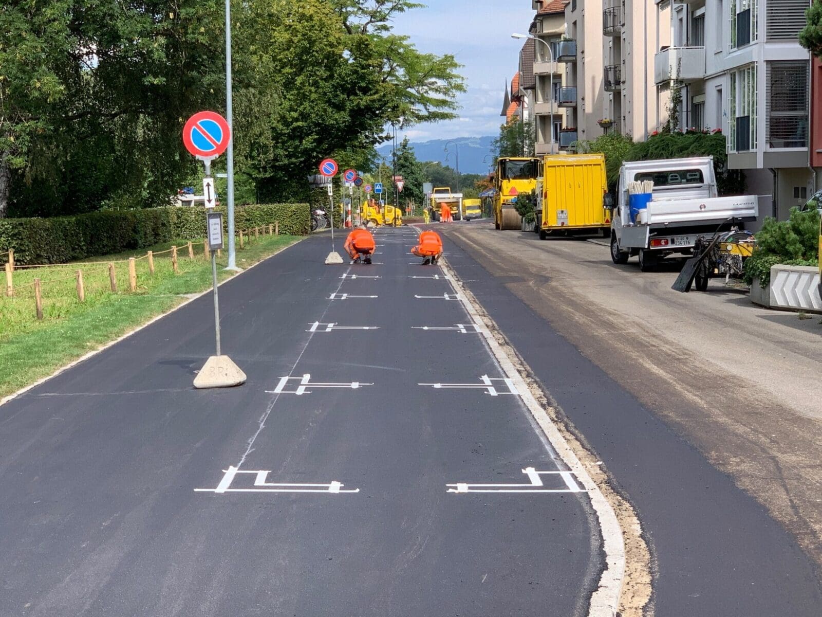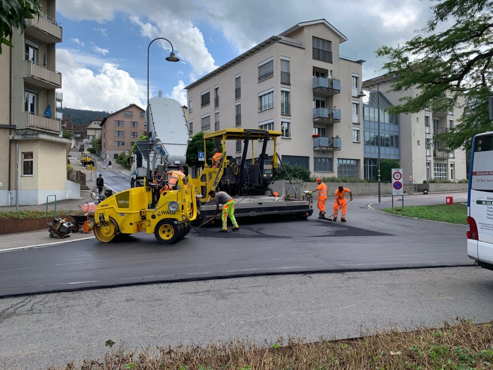 Da ging was heute im östlichen Teil der Promenadenstrasse. Die Bauarbeiter kamen zügig voran und alles deutet darauf hin, dass der erste Teil der Belagsarbeiten heute abgeschlossen werden kann (Bilder oben). Die Bushaltestellen beim Hauptbahnhof bleiben aber noch bis am 4. September etwas gegen Osten verschoben.