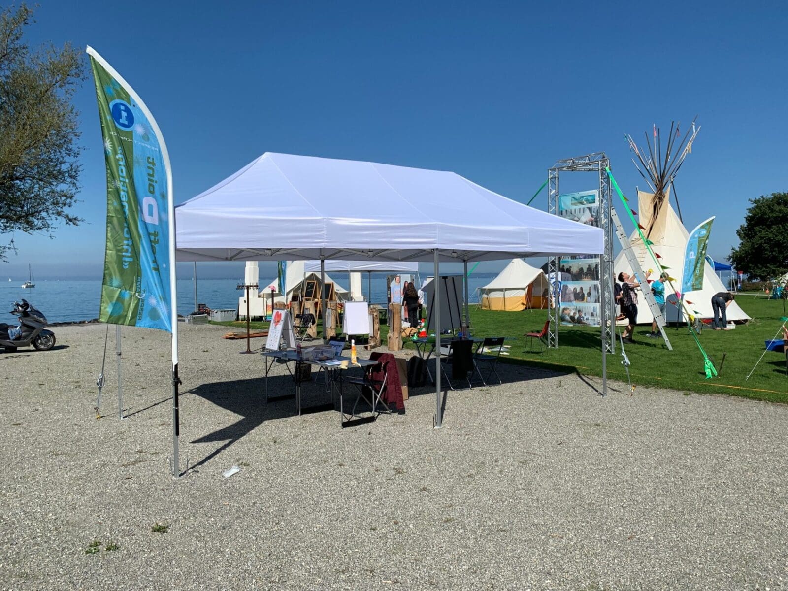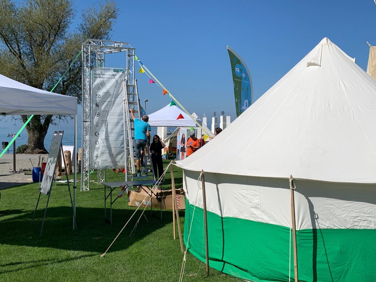 Das Respect Camp ermöglicht jungen Menschen eine Auseinandersetzung mit dem interkulturellen und interreligiösen Zusammenleben. Das eindrückliche Gelände zwischen Jachthafen und Würth Haus und direkt am See gelegen bietet mit seiner Ausstrahlung einen idealen Rahmen, um über Gewaltlosigkeit, Respekt und Friedensförderung miteinander ins Gespräch zu kommen. Die regionalen Medien sind heute auf 13.30 Uhr in dieses Respect-Camp zu einer Führung eingeladen. Das Rorschacher Echo wird morgen darüber berichten. Das Begegnungscafé ist öffentlich und an beiden Nachmittagen geöffnet. Die Bilder stammen von gestern und zeigen den Aufbau des Camps.