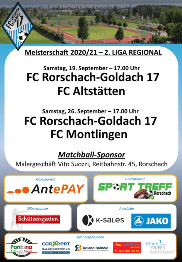 Morgen Samstag empfängt das 2. Liga-Team des FC RG 17 um 17 Uhr auf Kellen den FC Altstätten. Den Gästen ist der Start in die neue Meisterschaft gründlich misslungen. Nach 3 Partien stehen sie mit 0 Punkten am Tabellenende. Am Mittwoch führten sie zwar gegen Mels mit 2:0 und 3:1, verloren aber trotzdem noch 3:4. Die Rheintaler werden bissig sein. Die Gastgeber haben ihren ersten Vollerfolg am Dienstag erreicht. Das 0:4 gegen Schluein müsste dem Team des Trainers Olaf Sager jetzt die nötige Sicherheit geben. Aber unterschätzen darf man die Altstätter sowieso gar nie. Die grosse Vorschau von Elmar Keel findet man hier.