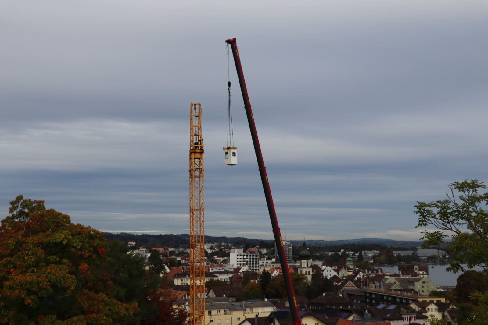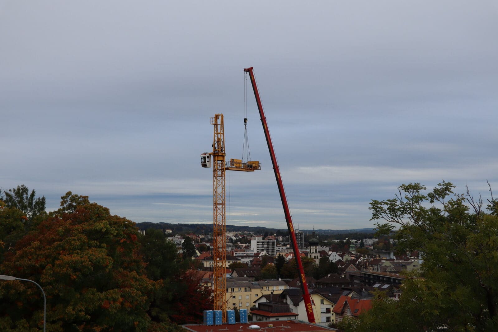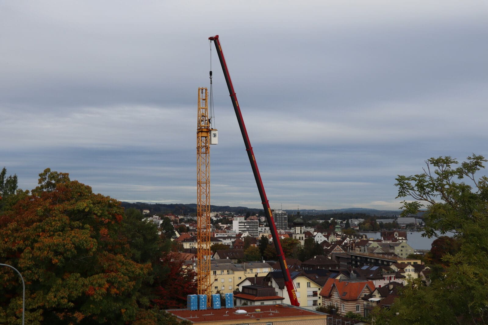 Zum Bauen braucht es Krane. Krane sind wuchtig und für die Bauarbeiter unentbehrlich. Zum Glück werden sie aber nie dauernd gebraucht und wieder abgebaut. So passiert heute bei der Überbauung an der Wachsbleichestrasse. Und jetzt stört kein Kran mehr die Aussicht von der Terrasse aus. Auch gut. Hier Bilder von der Demontage.