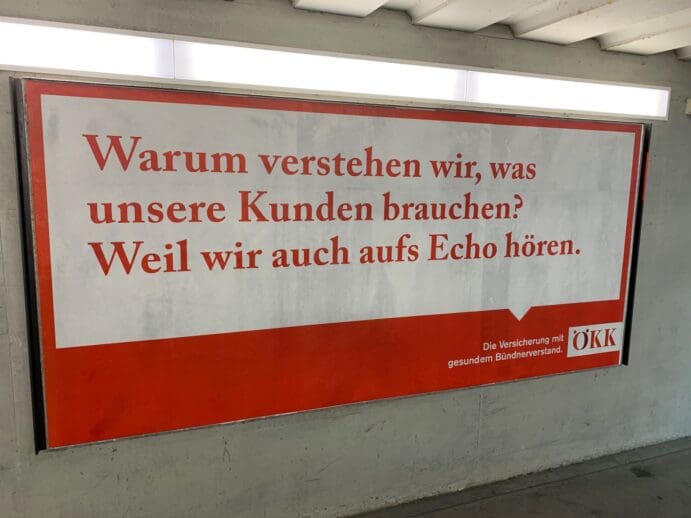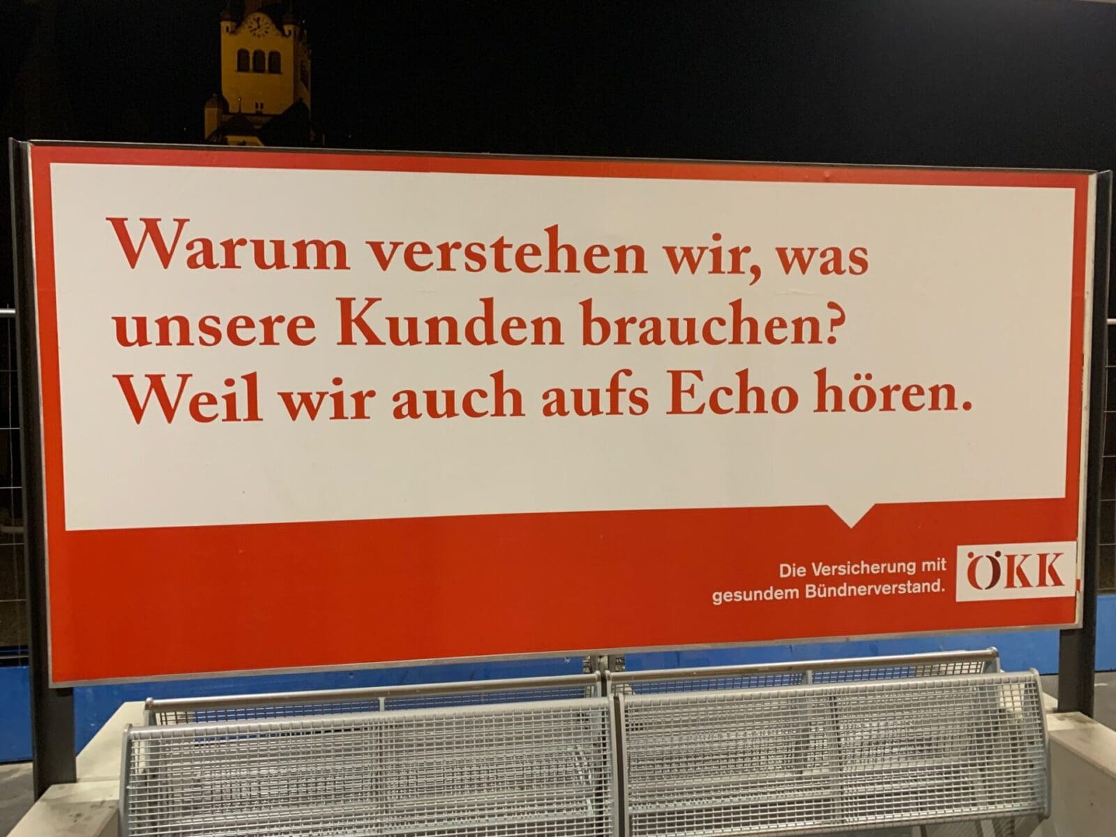 Das Rorschacher Echo liebt diese Werbung …Themen:Rorschach 25. Oktober 2020 - 06:20Man findet sie jetzt auch in der Unterführung beim Hauptbahnhof wie auch auf dem Perron beim Stadtbahnhof. Danke, ÖKK.Teilen mit: Einen Link per E-Mail an einen Freund senden (Wird in neuem Fenster geöffnet) E-Mail Drucken (Wird in neuem Fenster geöffnet) Drucken Auf Facebook teilen (Wird in neuem Fenster geöffnet) Facebook Auf X teilen (Wird in neuem Fenster geöffnet) X Auf WhatsApp teilen (Wird in neuem Fenster geöffnet) WhatsApp Gefällt mir:Gefällt mir Wird geladen …Newsletter abonnieren Bitte dieses Feld leer lassenBitte wähle, ob Du über jeden neuen Beitrag sofort oder lieber jeden Morgen gegen 9 Uhr eine Zusammenfassung der neusten Beiträge erhalten möchtest.Liste(n) auswählen: Neues vom Echo (Zusammenfassung) Neues vom Echo (Sofortbenachrichtigung) Dieses Feld wird benötigt.Prüfen Sie Ihren Posteingang und den Spamordner, um Ihr Abonnement zu bestätigen.