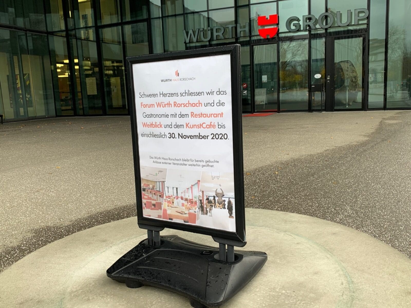 Das Würth Haus Rorschach bleibt für bereits gebuchte Anlässe externer Veranstalter weiterhin geöffnet. Aktuelle Informationen findet man hier. Passt auf euch auf und bleibt gesund!“, heisst es auf der Homepage.
