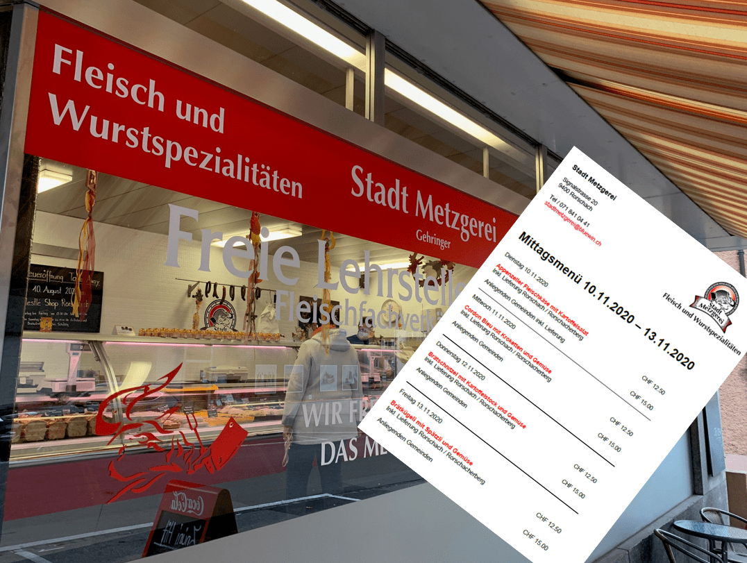 Die Auslieferungen der Mittagsmenü finden zwischen 11.30 Uhr bis 12.30 Uhr statt. Wegen der aktuellen Corona Situation erfolgt der Hauslieferdienst mit Mundschutz und Handschuhen. Zahlungsmöglichkeiten entweder bar oder mit Karte. Aus organisatorischen Gründen wird gebeten, sich bis spätestens 09.30 Uhr des jeweiligen Tages anzumelden und die Bestellung aufzugeben. Dies entweder telefonisch über 071 841 04 41 oder per Mail. Nachstehend das Angebot der aktuellen Woche.