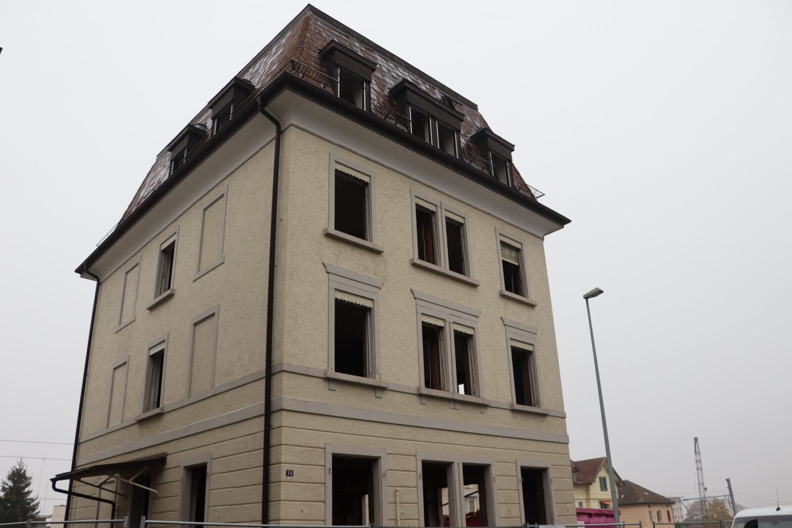 Die Tage dieses Hauses an der Dufourstrasse 14 sind auch gezählt. Ausgehöhlt ist die Liegenschaft mittlerweile. Der Abriss wird dann – auch wegen der Nähe zum Bahngeleise – vermutlich bei der nächsten Nachtsperrung der Bahnlinie erfolgen.