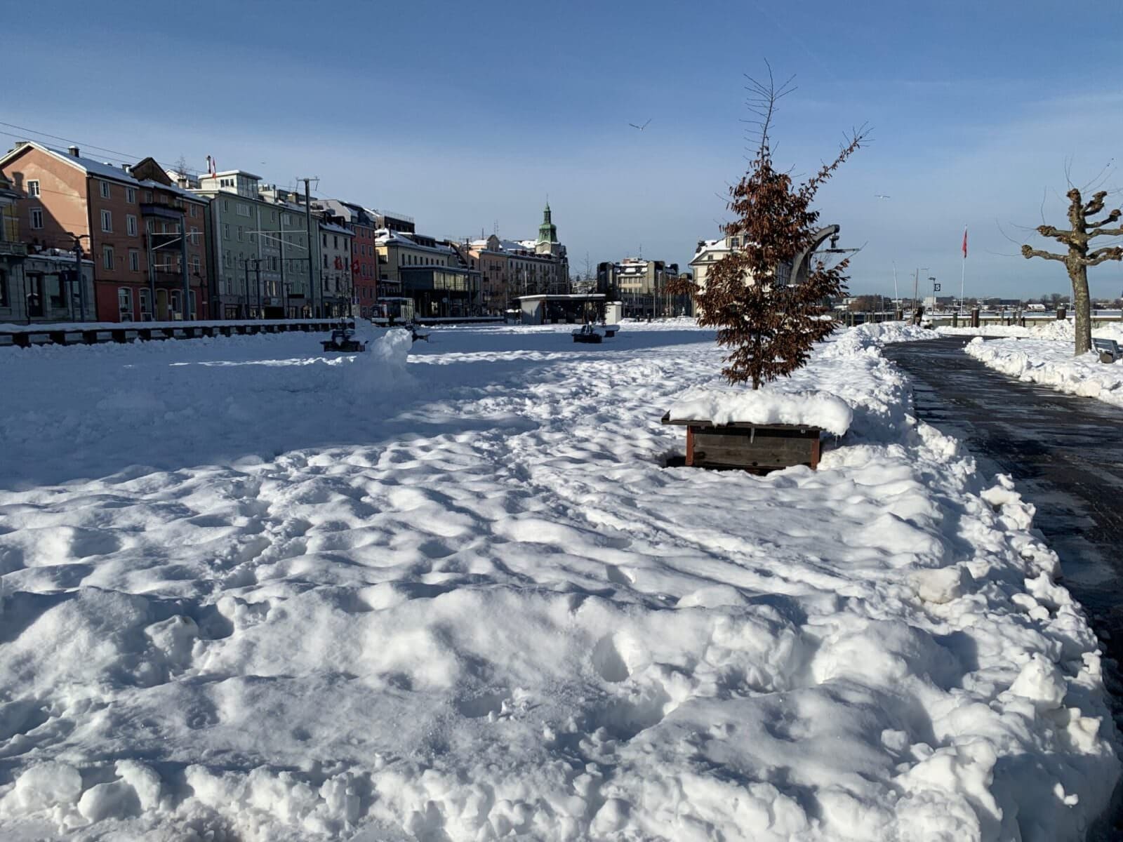 Hier erste Schnappschüsse von gestern. Bilder von heute werden nachgeliefert. Die Schneeräumung in der Stadt war auch gestern nicht zu übersehen. Ab heute dürften die Männer des Bauamts auch noch Hilfe vom Föhn erhalten. Und dann hat sich in der Zwischenzeit auch geklärt, von wem die schönen Bilder sind, die gestern hier auf dem Rorschacher Echo zu finden waren. Herzlichen Dank, René Dickenmann.