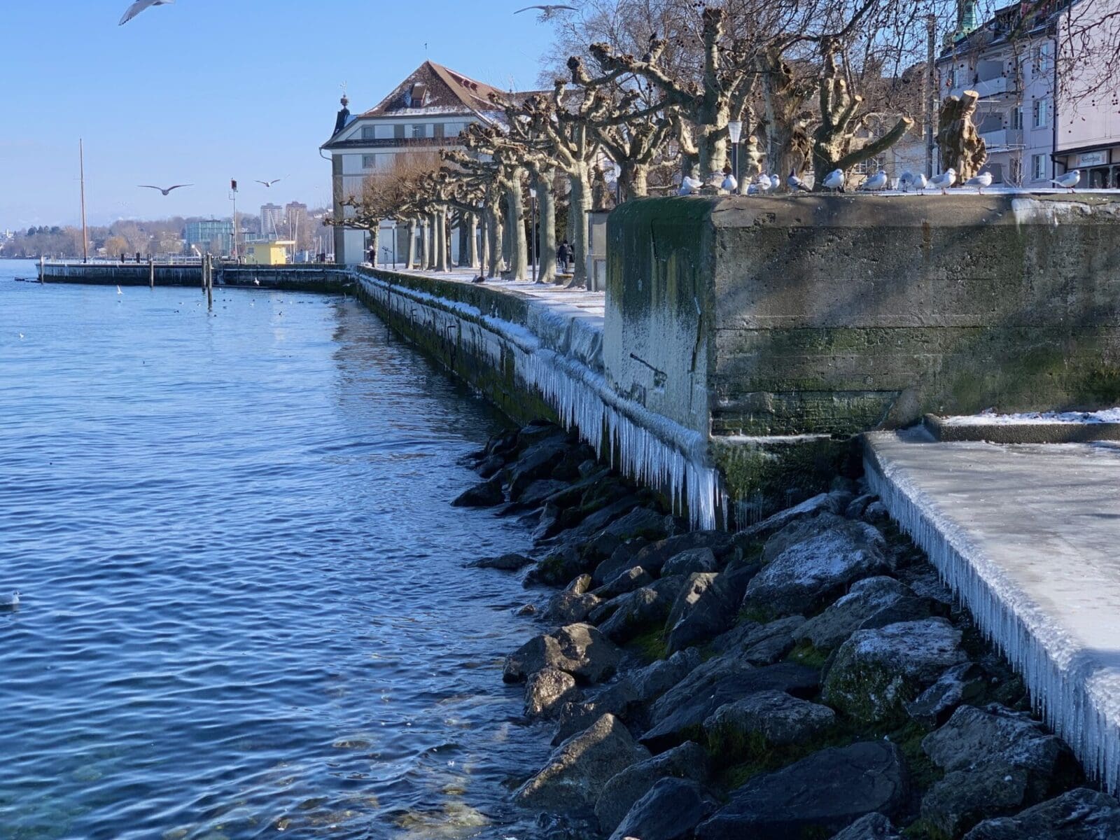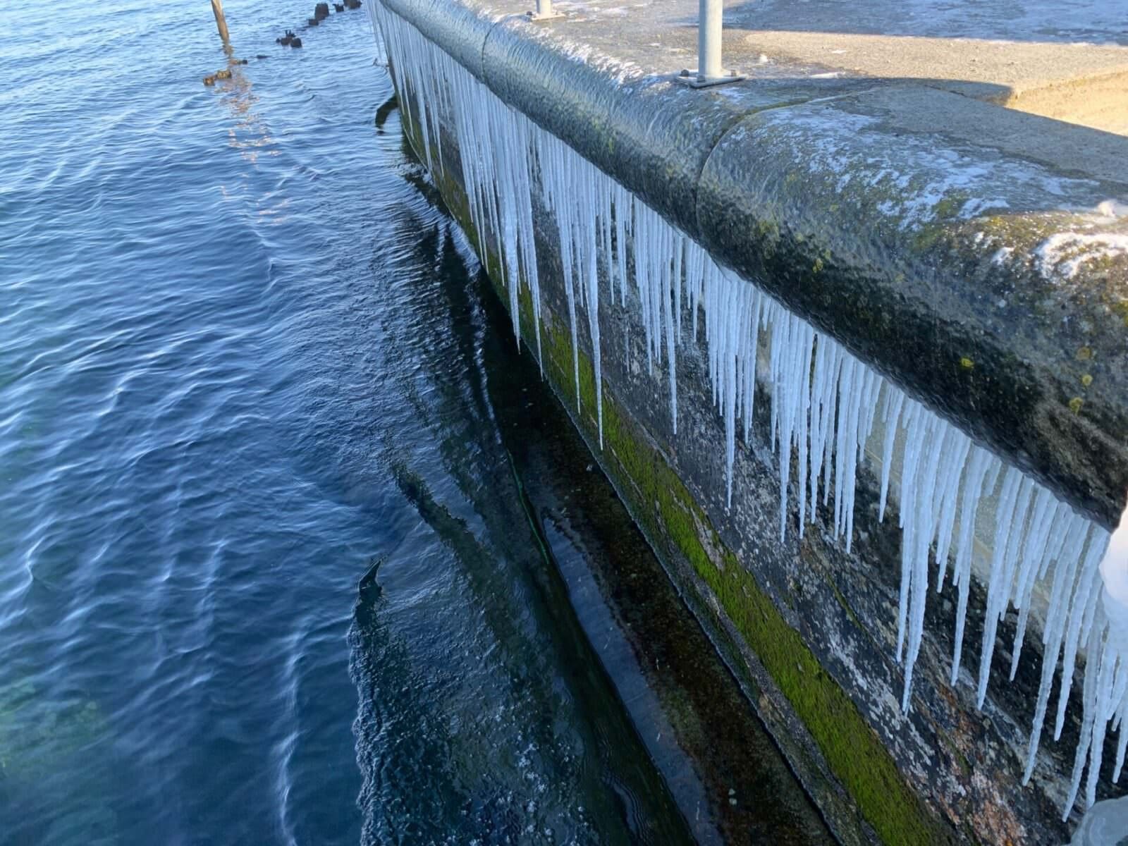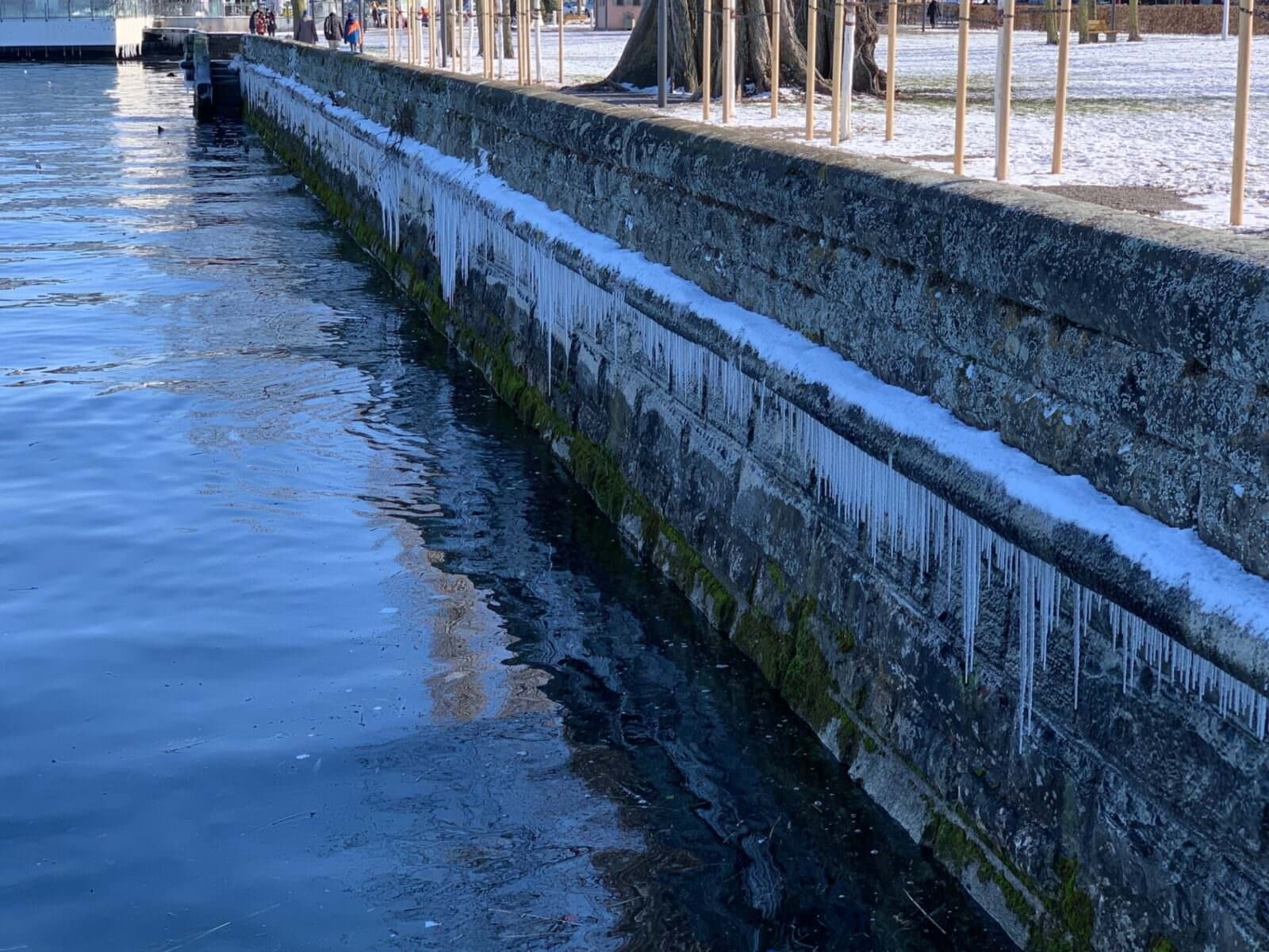 Die Rorschacher Seepromenade zeigt sich an exponierten Stellen stark vereist. Es lohnt sich auf jeden Fall, den teils skurrilen Eisgebilden einen Besuch abzustatten. Die hier gezeigten Aufnahmen und das Video stammen von gestern Nachmittag. Heute wird sich das Ganze wahrscheinlich schon wieder ein anderer Form präsentieren. Und passt auf, denn es ist zum Teil spiegelglatt. Und die drei letzten Bilder ganz unten zeigen, wie selbst Löschwasser noch Kunstwerke entstehen lässt. Danke, Casy.
