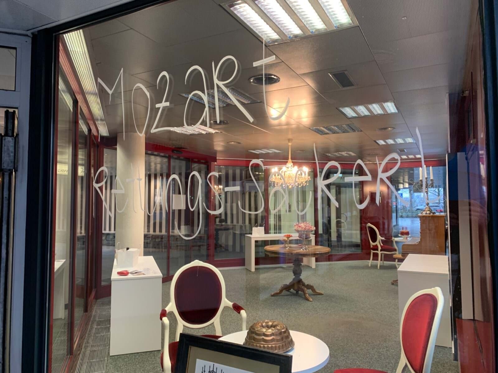 Take Home warme Küche durchgehend von 11.00 bis 19.00 Uhr: Wochen-Hit: Kalbsbraten mit hausgemachten Spätzli und Gemüse. Noch immer erhältlich sind die Mozart Rettungs-Sackerl für den Kaffeehaus-Genuss zu Hause. Mehr Infos findet man hier.