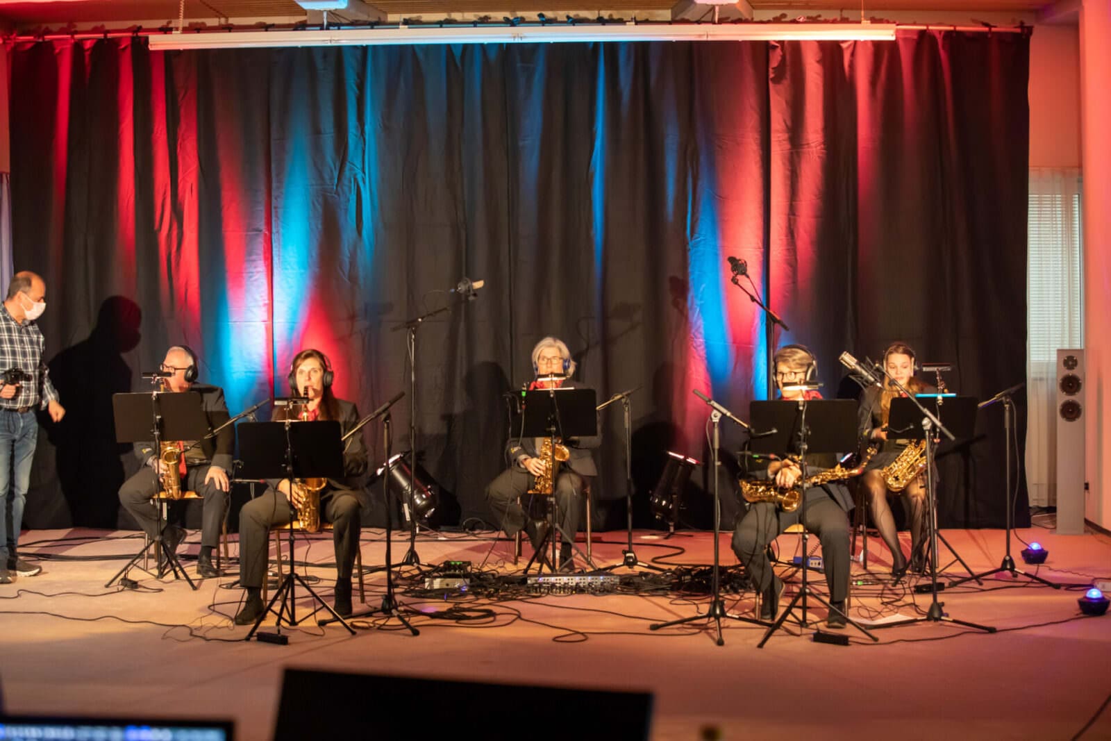 Eigentlich wäre ein Liveauftritt der Stadtmusik an der diesjährigen Ortsbürger Versammlung geplant gewesen. Wie leider bekannt findet diese per Briefabstimmung statt und der digitale Geschäftsbericht wird Anfangs April auf der Webseite der Ortsbürger Rorschach aufgeschaltet. Um diesen trotzdem musikalisch zu umrahmen, war die Stadtmusik Rorschach letzten Samstag von 9:00 bis 19:00 Uhr im Probelokal und dank der finanziellen Unterstützung der Ortsbürger mit einem professionellen Tonstudio. Corona konform wurde im 30 Minutentackt 4 bis 5 Stadtmusikantinnen und Stadtmusikanten im dafür hergerichteten Probelokal aufgenommen. Die erste Gruppe erstellte eine Masteraufnahme, die der Tontechniker von der Firma Soundsolution aufbereitete und den folgenden Gruppen als Monitoring auf den Kopfhörer einspielte. Da die Stadtmusik schon einige Monate per Livestream am Üben ist, waren sie schon etwas geübt. Der Stadtmusik Rorschach hat es richtig Spass gemacht und auch der motivierte Tontechniker war extrem froh, wieder arbeiten zu dürfen. Man darf also gespannt sein, was für eine musikalische Ortsbürgerversammlung in digitaler Form einem erwartet. (Text/Bilder: as)
