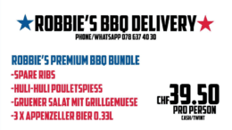 Seine Grillkünste sind in unserer Region (Treppenhaus, Zelt-Werk etc.) bestens bekannt. Wer das morgen geniessen will muss heute bis 19 Uhr bestellen. Mehr zu „Robbie’s BBQ Delivery“ findet man hier.
