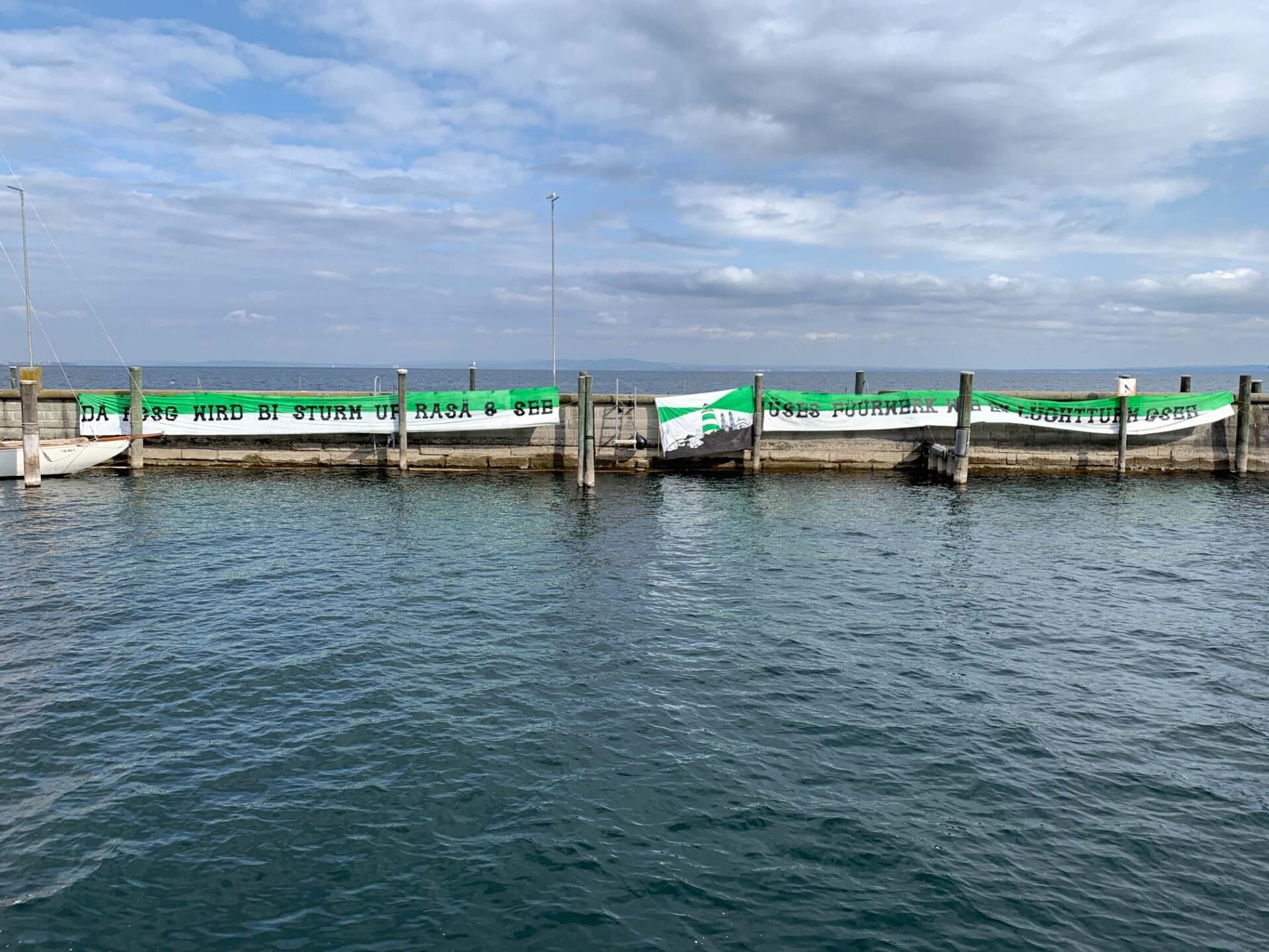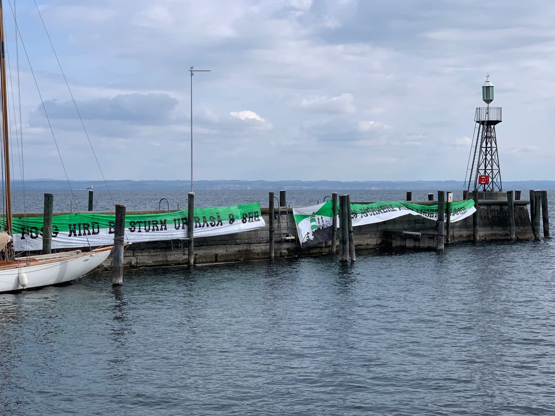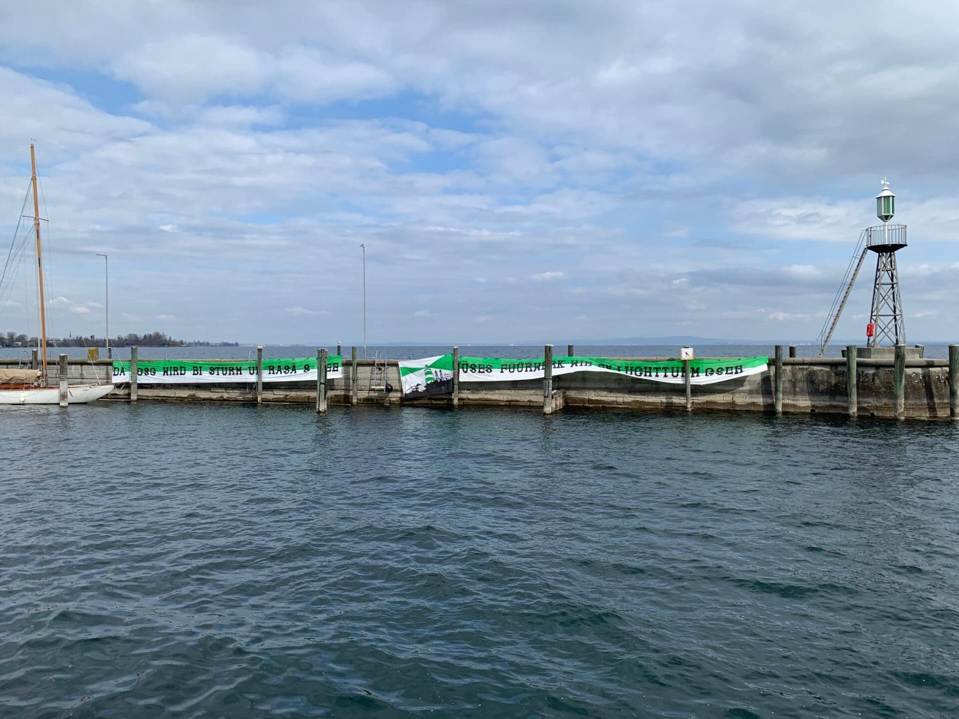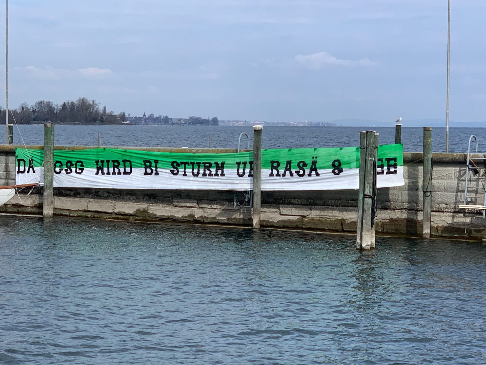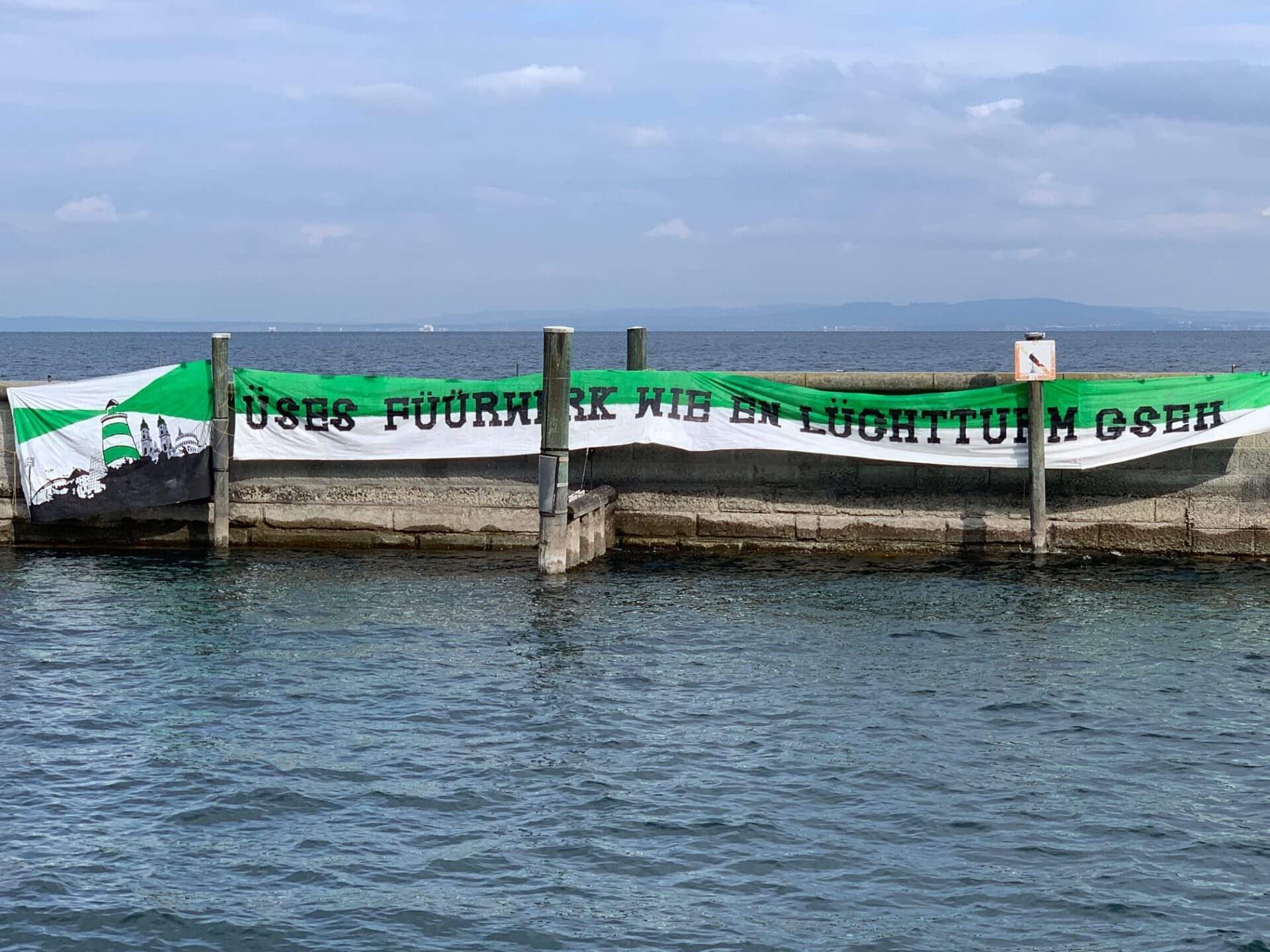 Man kann die beiden grossen Transparente am Rorschacher Hafen unmöglich übersehen. Vielleicht ein Hinweis der Fans auf das heutige Meisterschaftsspiel im Kybunpark gegen den FCZ oder dann ein Hinweis auf den bevorstehenden Geburtstag des FCSG am 19. April.