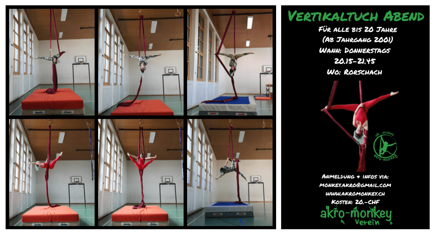 Lust, in Rorschach am Tuch fliegen zu lernen?Themen:Rorschach 20. April 2021 - 05:15Das kann man auch bei uns in Rorschach. Infos gibt es auf der Webseite oder auch auf Facebook. Anmeldung erforderlich. Start ist am kommenden Donnerstag. (Bilder: hp am)Teilen mit: Einen Link per E-Mail an einen Freund senden (Wird in neuem Fenster geöffnet) E-Mail Drucken (Wird in neuem Fenster geöffnet) Drucken Auf Facebook teilen (Wird in neuem Fenster geöffnet) Facebook Auf X teilen (Wird in neuem Fenster geöffnet) X Auf WhatsApp teilen (Wird in neuem Fenster geöffnet) WhatsApp Gefällt mir:Gefällt mir Wird geladen …Newsletter abonnieren Bitte dieses Feld leer lassenBitte wähle, ob Du über jeden neuen Beitrag sofort oder lieber jeden Morgen gegen 9 Uhr eine Zusammenfassung der neusten Beiträge erhalten möchtest.Liste(n) auswählen: Neues vom Echo (Zusammenfassung) Neues vom Echo (Sofortbenachrichtigung) Dieses Feld wird benötigt.Prüfen Sie Ihren Posteingang und den Spamordner, um Ihr Abonnement zu bestätigen.