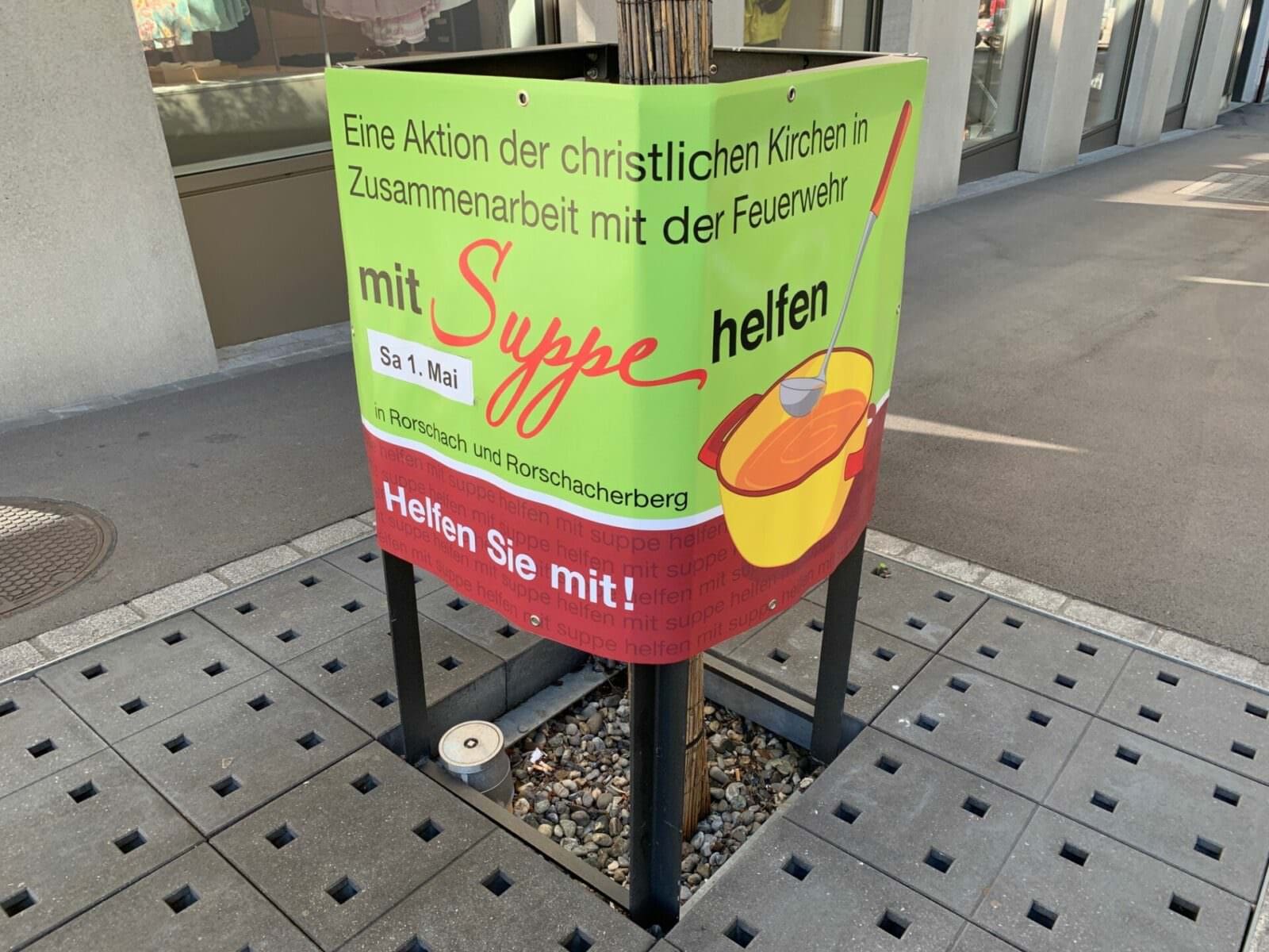 Für einmal nicht im Einsatz gegen Feuer und dergleichen, sonders als Mitinitiator der Aktion „Mit Suppe helfen“. Geniessen kann man zwischen 11.30 und 14.30 Uhr an einem der Standorte draussen in Rorschach (Trischliplatz, Evang. Kirchgemeindezentrum) oder Goldach (Hauptstrasse 2, vor Gemeindeverwaltung) eine währschafte, fleischlose und laktosefreie Suppe aus der HPV-Küche, Kaffee und Kuchen. Man wird BAG konform bedient. Und wer es vorzieht, kann die Suppe auch einfach abholen und zuhause geniessen (Take Away). Alle Einnahmen kommen vollumfänglich der „Kinderspitex Ostschweiz“ zugut.