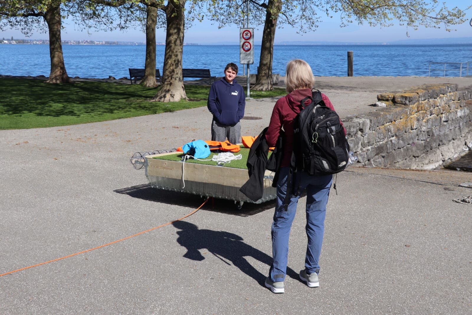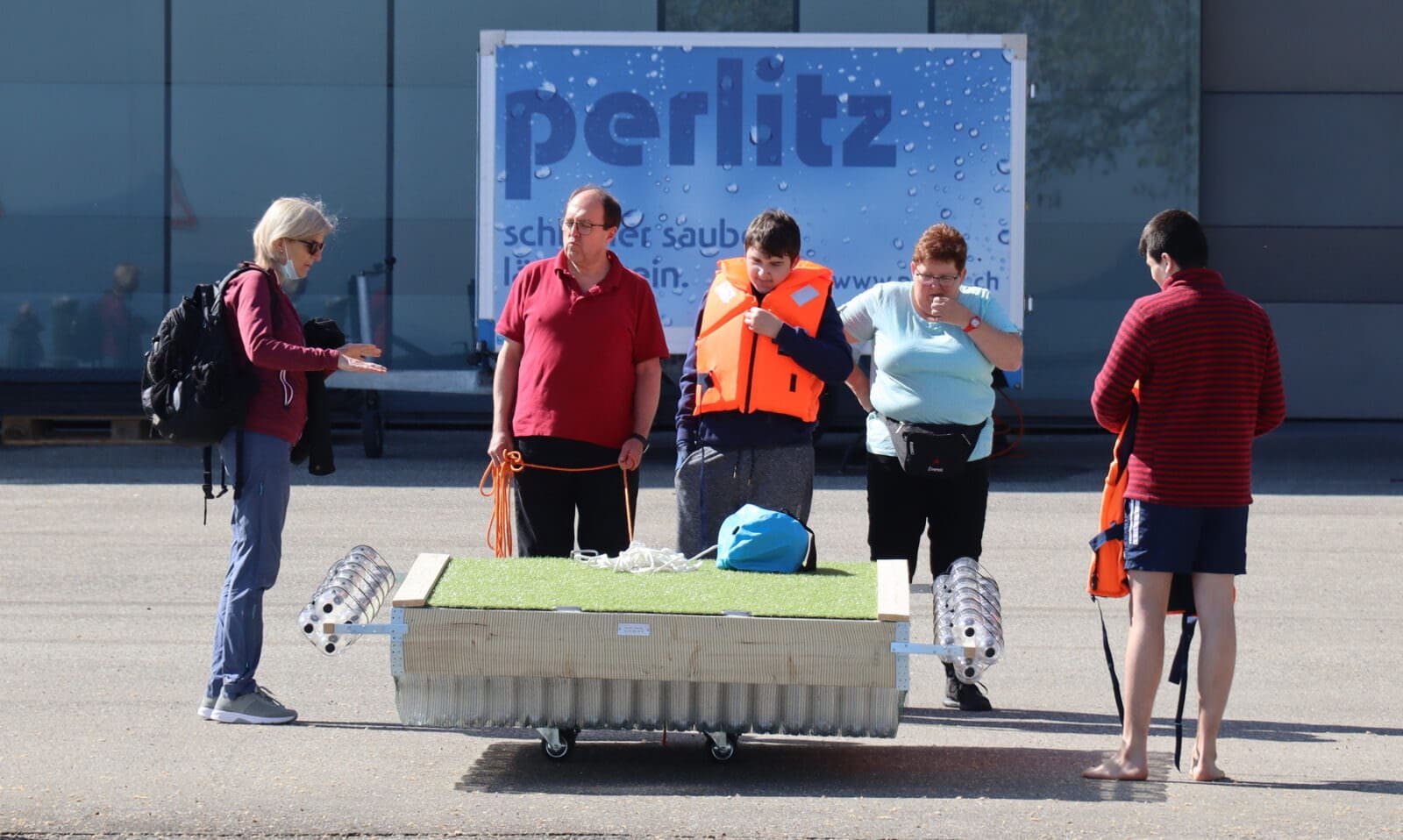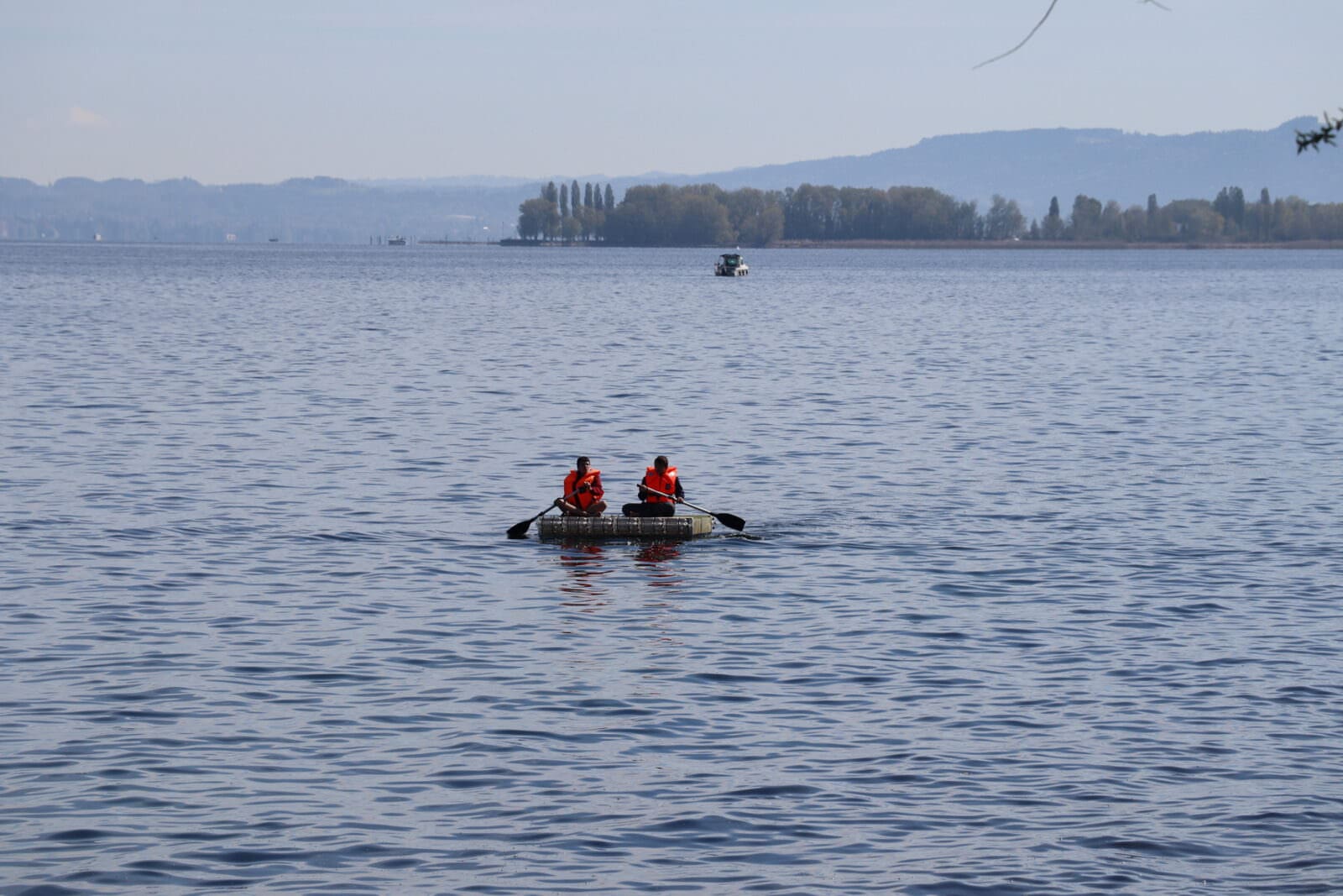 Gestern war es dann soweit. Florian hat sein Floss im Beisein seiner Eltern, seinem Kollegen und Mitpaddler Ameen und seiner Lehrerin Judith Schwierin beim Kleinboothafen beim Würth Haus ins Wasser gelassen. Und das Floss hat das gemacht, wozu es gebaut wurde. Es hat Florina und Ameen dank den 520 PET-Flaschen über Wasser gehalten und beide sind vom einen zum nächsten Hafen gepaddelt. Das Floss hat sich als seetauglich erwiesen und Florian ist Dank diesem Projekt um eine Erfahrung reicher.