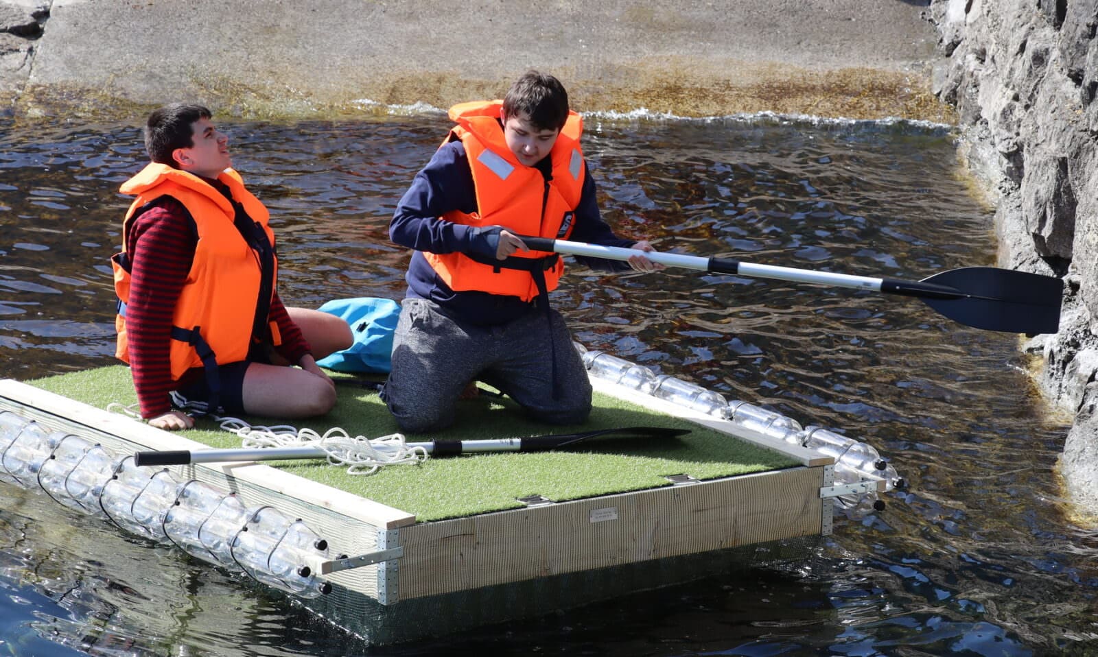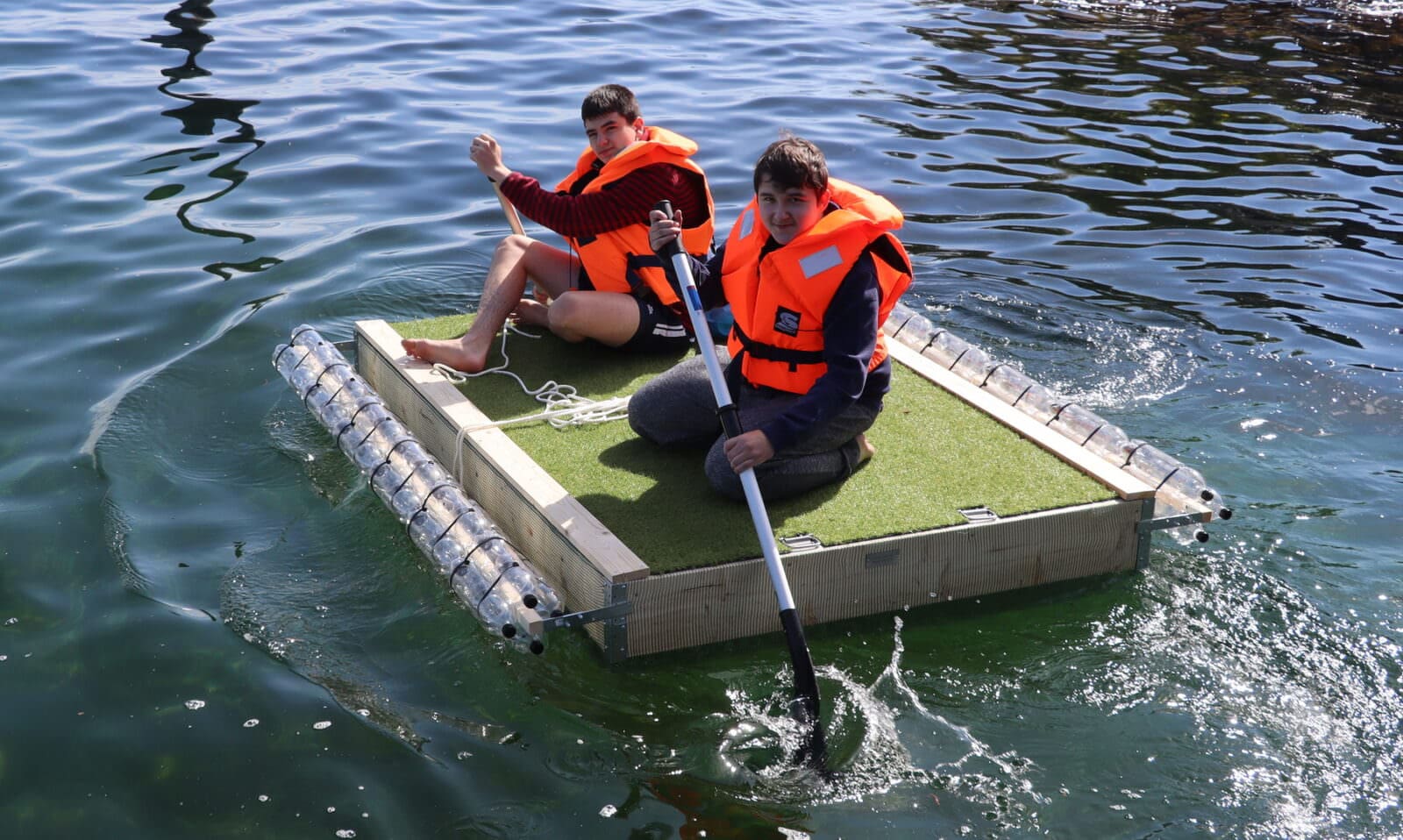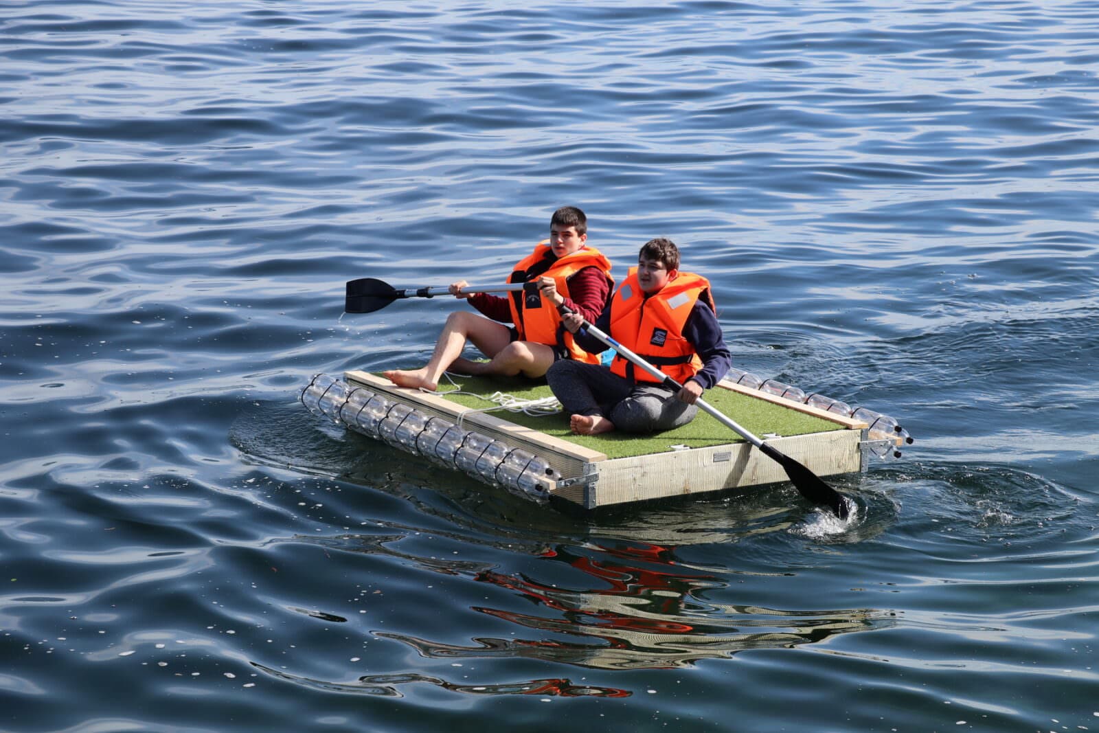 Gestern war es dann soweit. Florian hat sein Floss im Beisein seiner Eltern, seinem Kollegen und Mitpaddler Ameen und seiner Lehrerin Judith Schwierin beim Kleinboothafen beim Würth Haus ins Wasser gelassen. Und das Floss hat das gemacht, wozu es gebaut wurde. Es hat Florina und Ameen dank den 520 PET-Flaschen über Wasser gehalten und beide sind vom einen zum nächsten Hafen gepaddelt. Das Floss hat sich als seetauglich erwiesen und Florian ist Dank diesem Projekt um eine Erfahrung reicher.