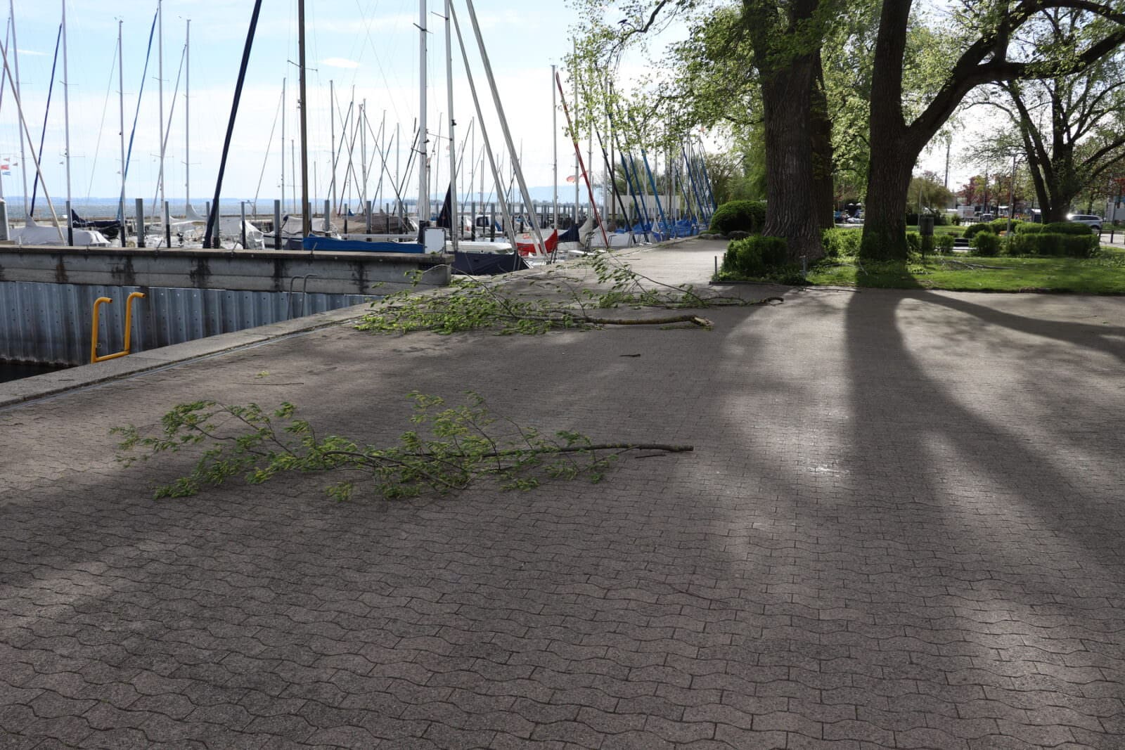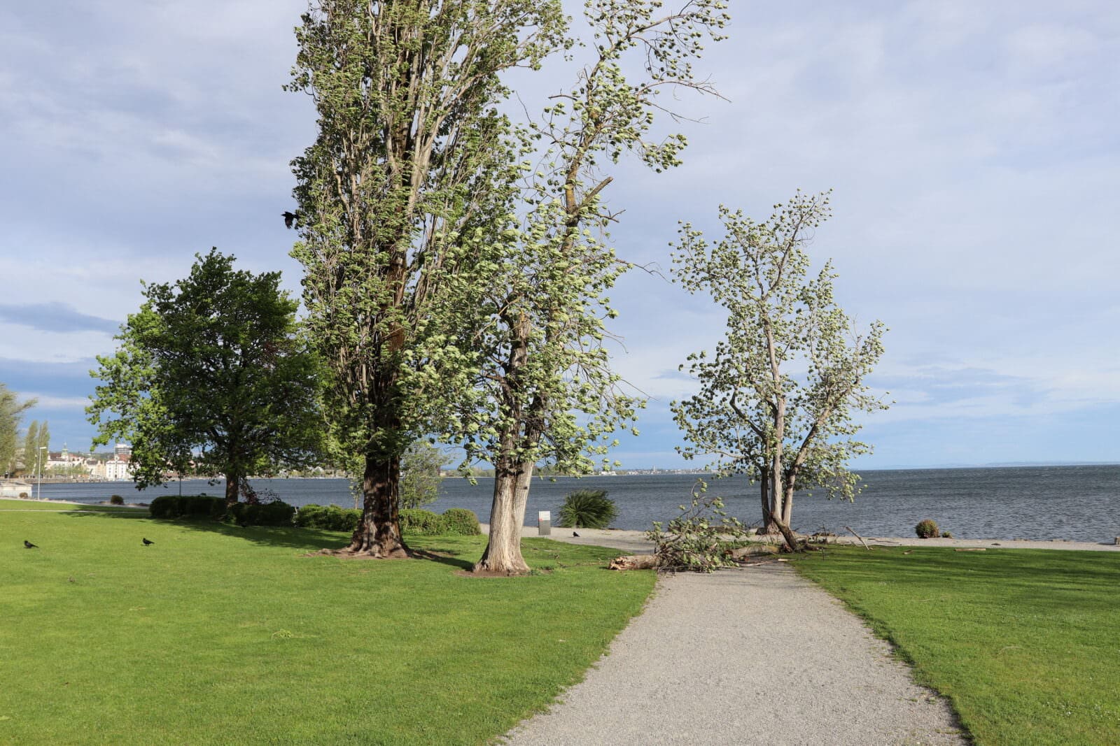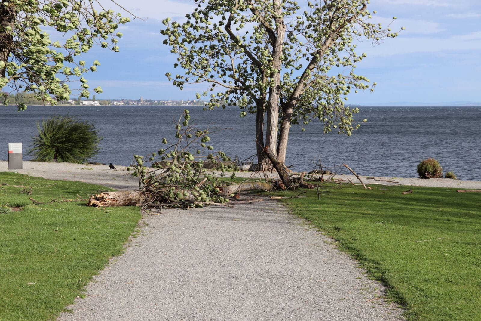 Einzelne kleine Äste haben dem Föhn nicht standgehalten. Die Stadtgärtnerei ist bereits unterwegs und beseitigt das Fallholz. Und der See zeigt sich in solchen Situationen auch immer noch einer ganz faszinierenden Seite. Hier Bilder von heute Vormittag.