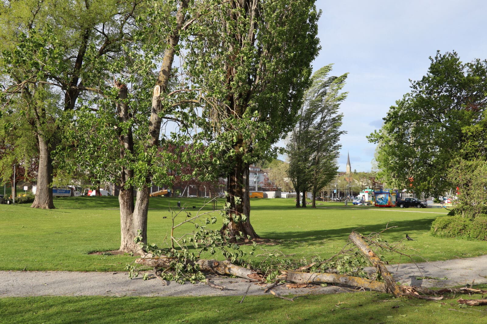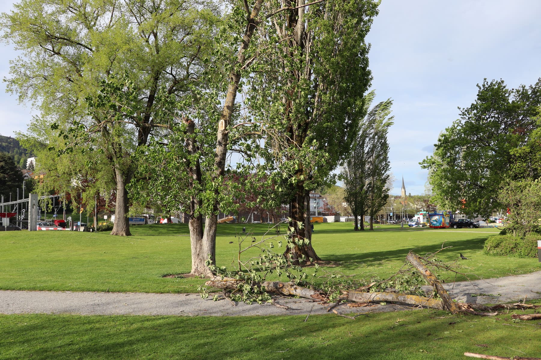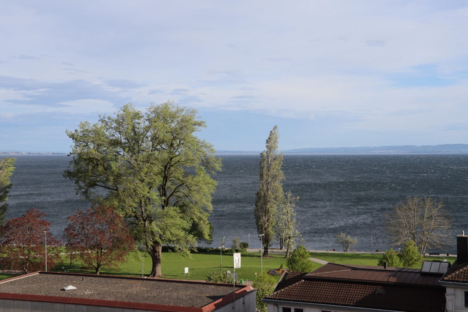 Einzelne kleine Äste haben dem Föhn nicht standgehalten. Die Stadtgärtnerei ist bereits unterwegs und beseitigt das Fallholz. Und der See zeigt sich in solchen Situationen auch immer noch einer ganz faszinierenden Seite. Hier Bilder von heute Vormittag.