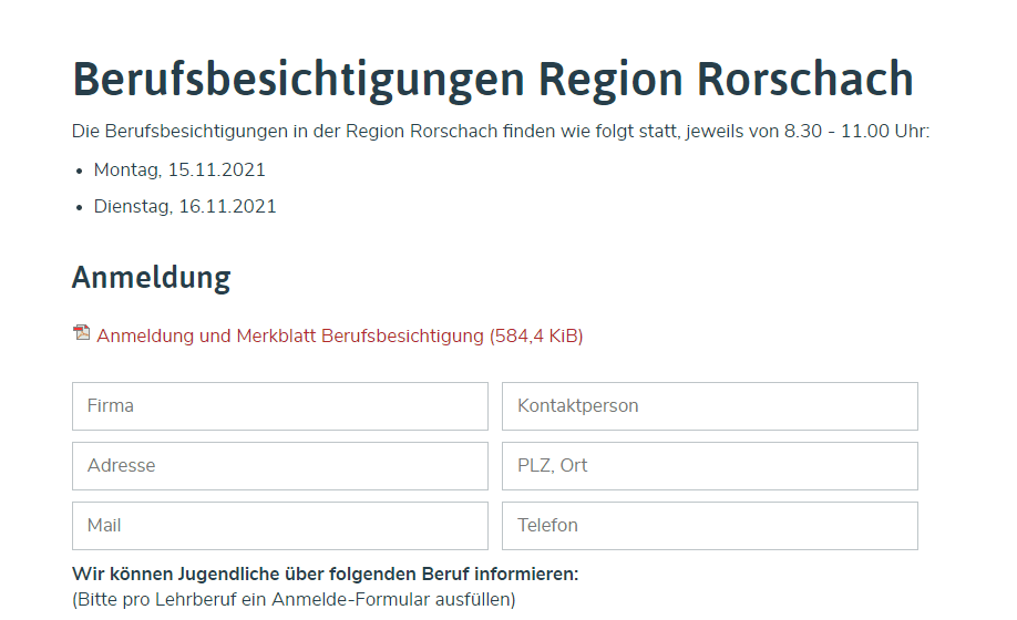 Der Verein Triebwerk lädt am 15. und 16. November 2021 Schüler und Schülerinnen der 2. Oberstufe zu den Berufsbesichtigungen in der Region Rorschach ein.